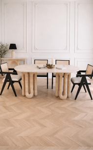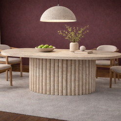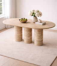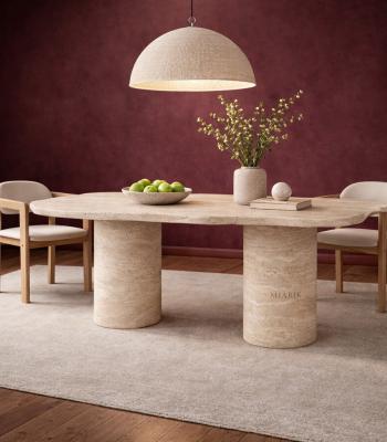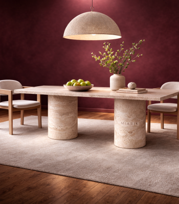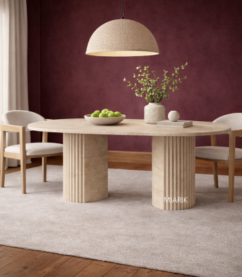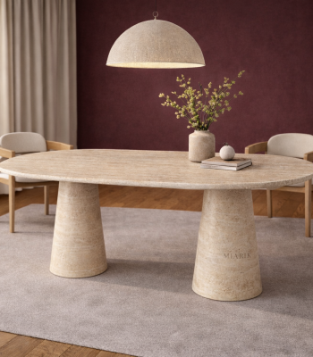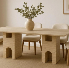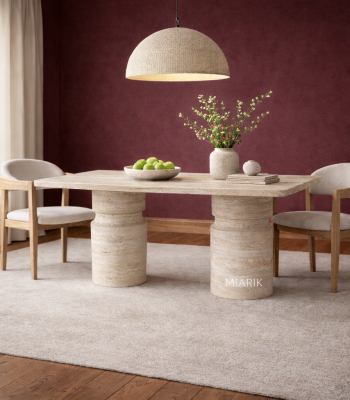 Bogum- Ahşap Ayak Traverten Mermer Yemek Masası