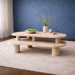 Elizabeth -Traverten Cam Lego Orta Sehpa
