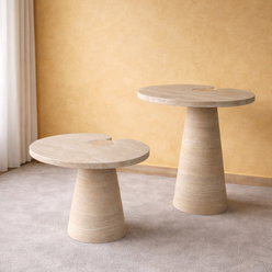 Bronte-Traverten Uzun Silindir Ayak Yan Sehpa