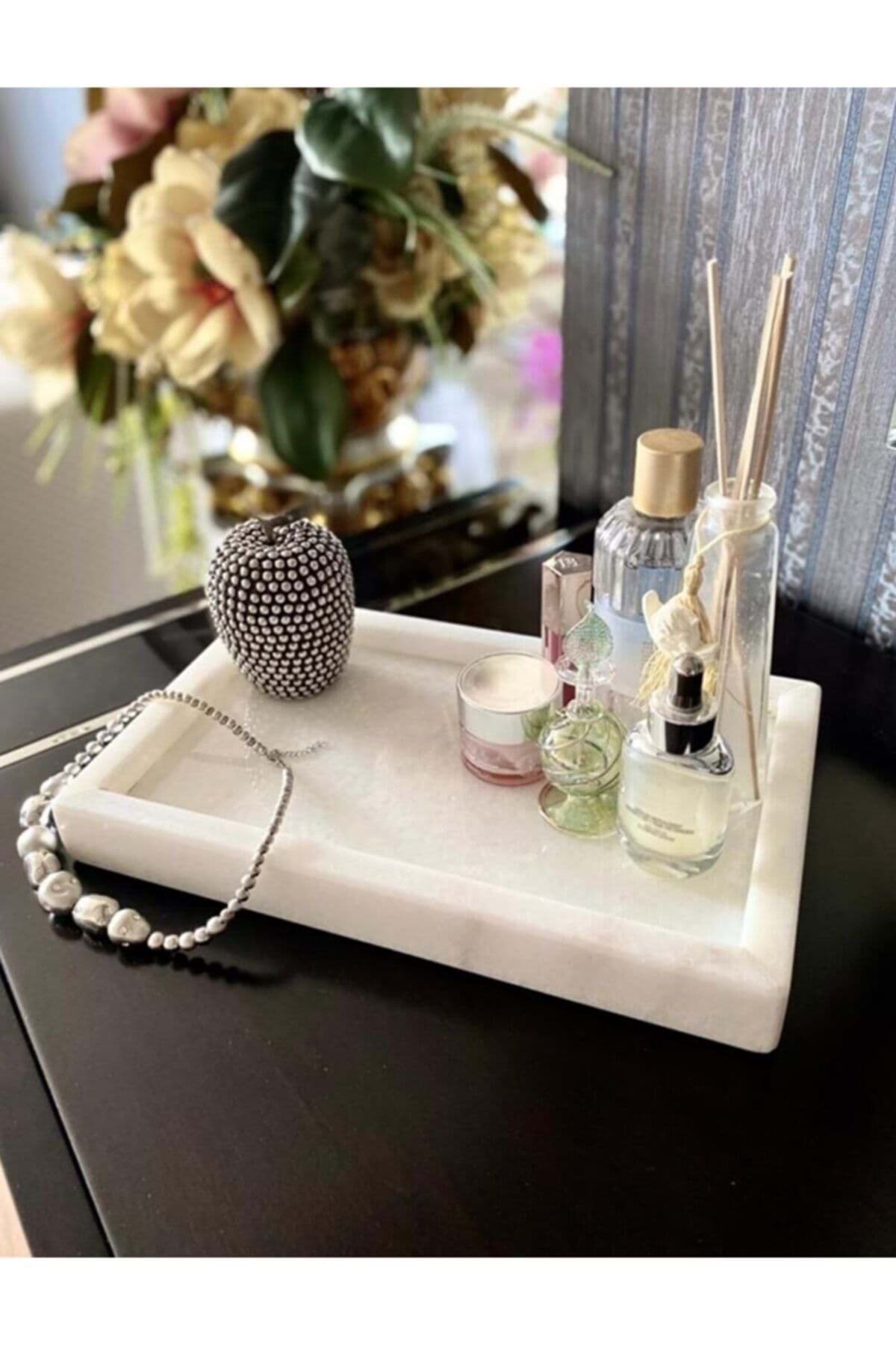 Beyaz Mermer Dikdortgen Tepsi 15 X 30 cm