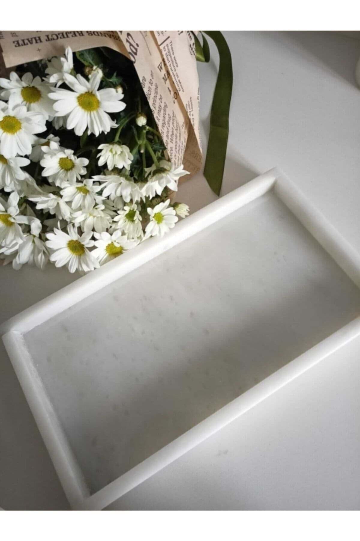 Beyaz Mermer Dikdortgen Tepsi 15 X 30 cm resmi