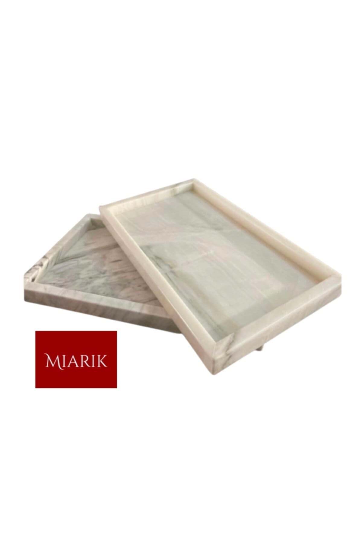 Beyaz Mermer Dikdortgen Tepsi 15 X 30 Cm