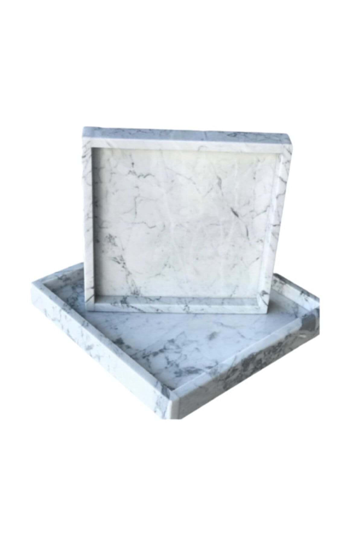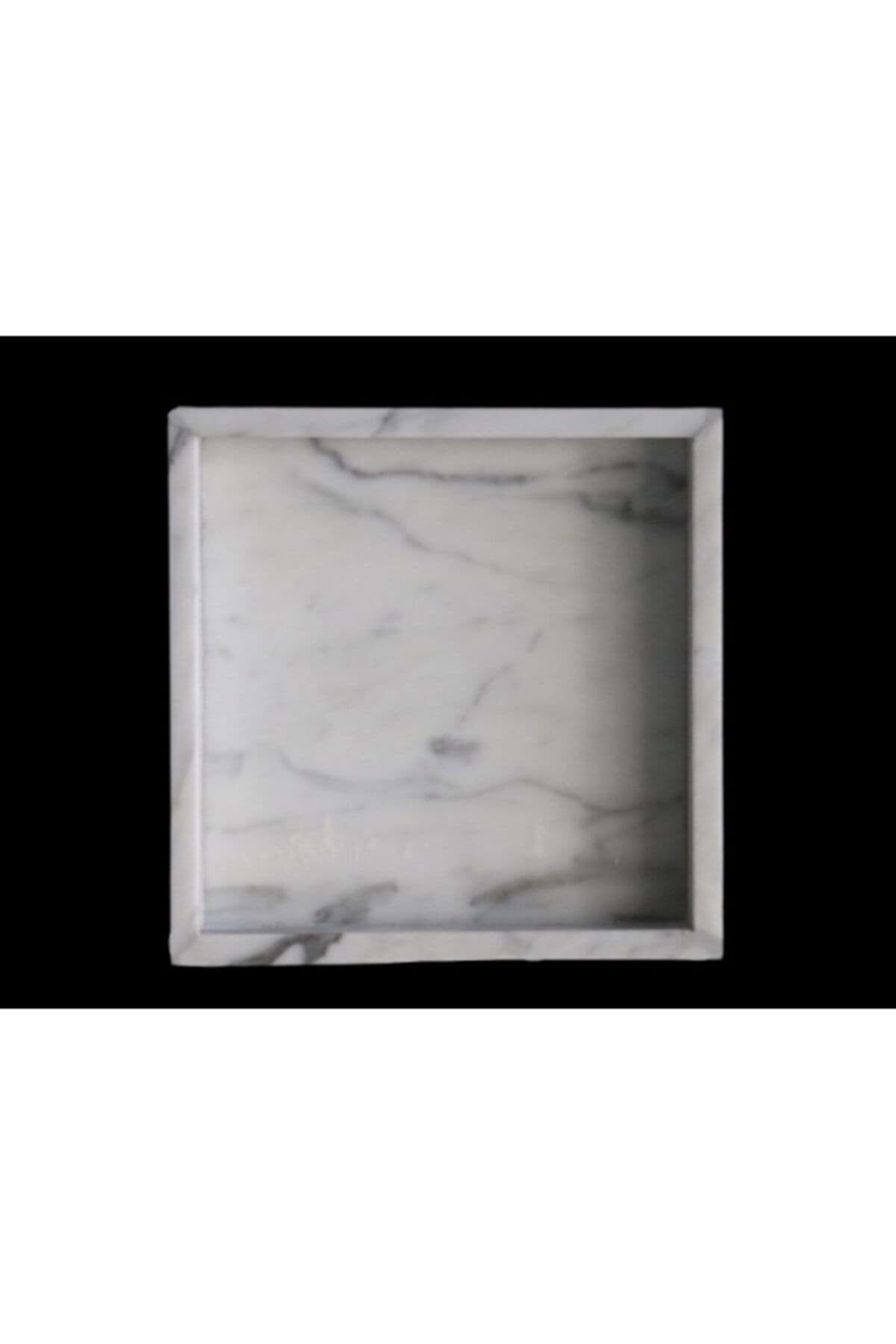 Dekoratif Beyaz Damarli Mermer Servis Sunum Tepsi 25 X 25 Cm