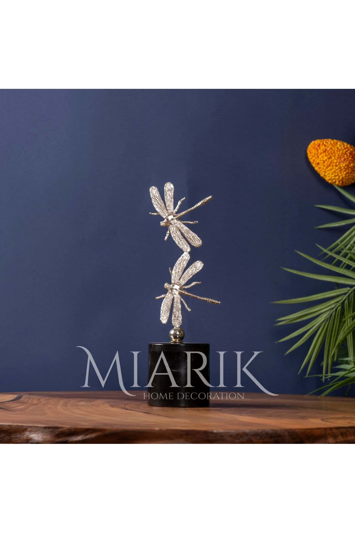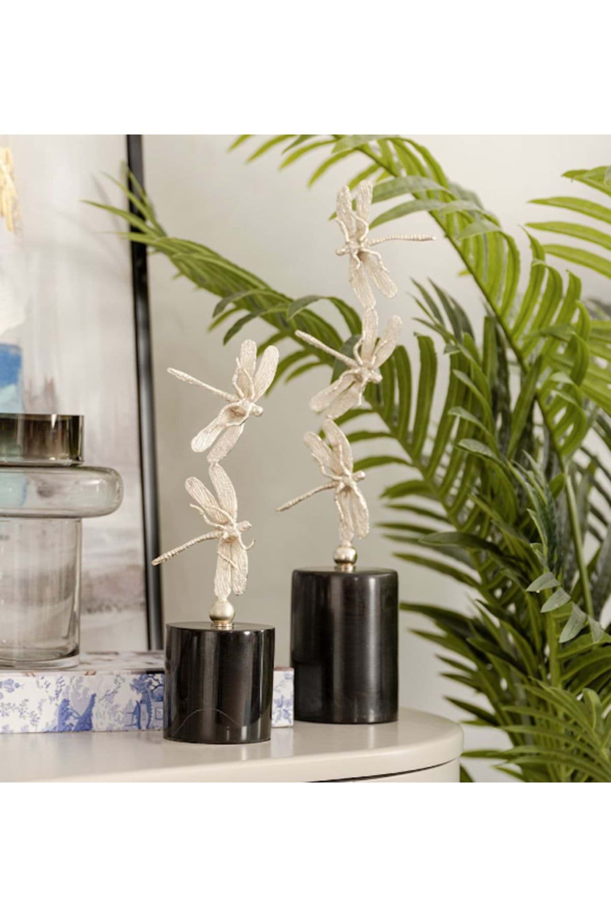 Modern dekorasyonun vazgeçilmez bir parçası olan bu dekoratif obje, metal malzemesiyle dayanıklılığı ve şıklığı bir arada sunar; Beyaz mermer kaideli tasarımı ile mekanınıza zarif bir dokunuş katarken, gold yusufçuk detayları ile göz alıcı bir estetik oluşturur; İki adet olarak sunulan bu set, farklı boyutlardaki yusufçuk figürleriyle mekanınızda uyum ve denge sağlar;
