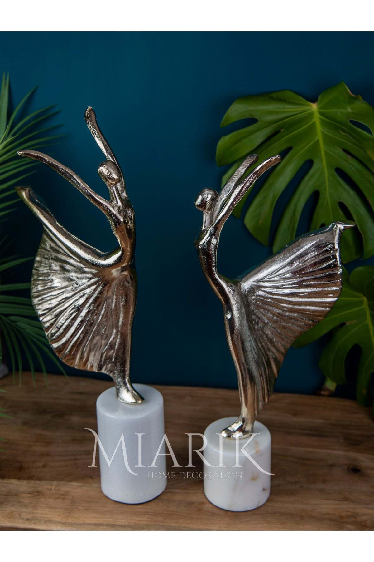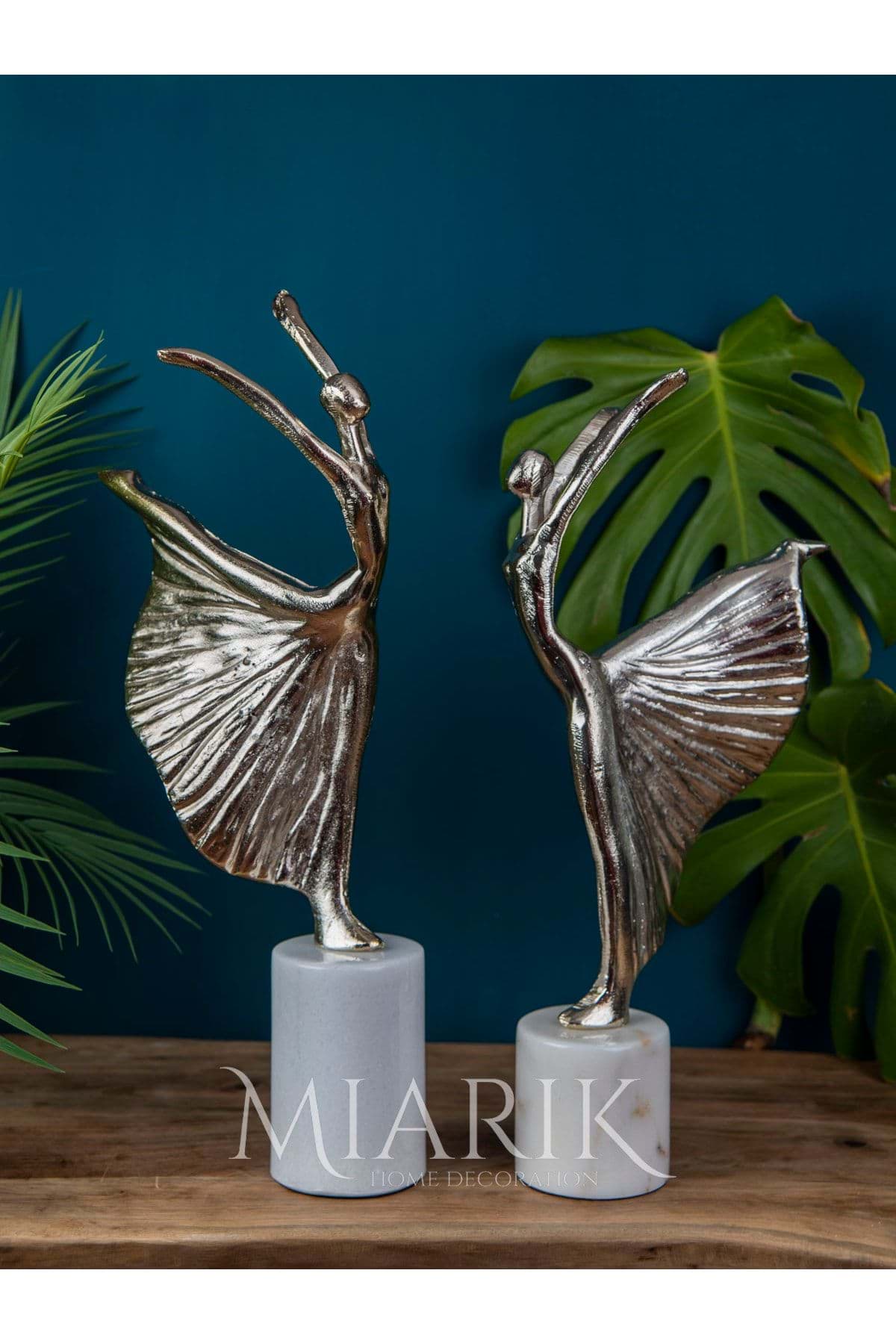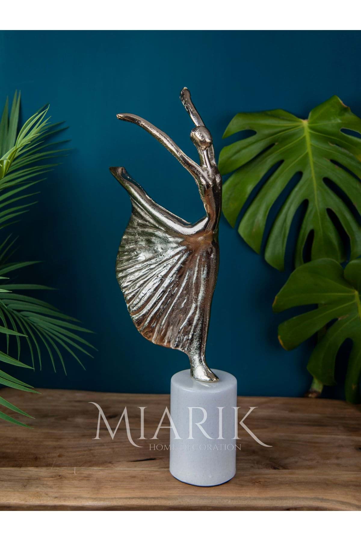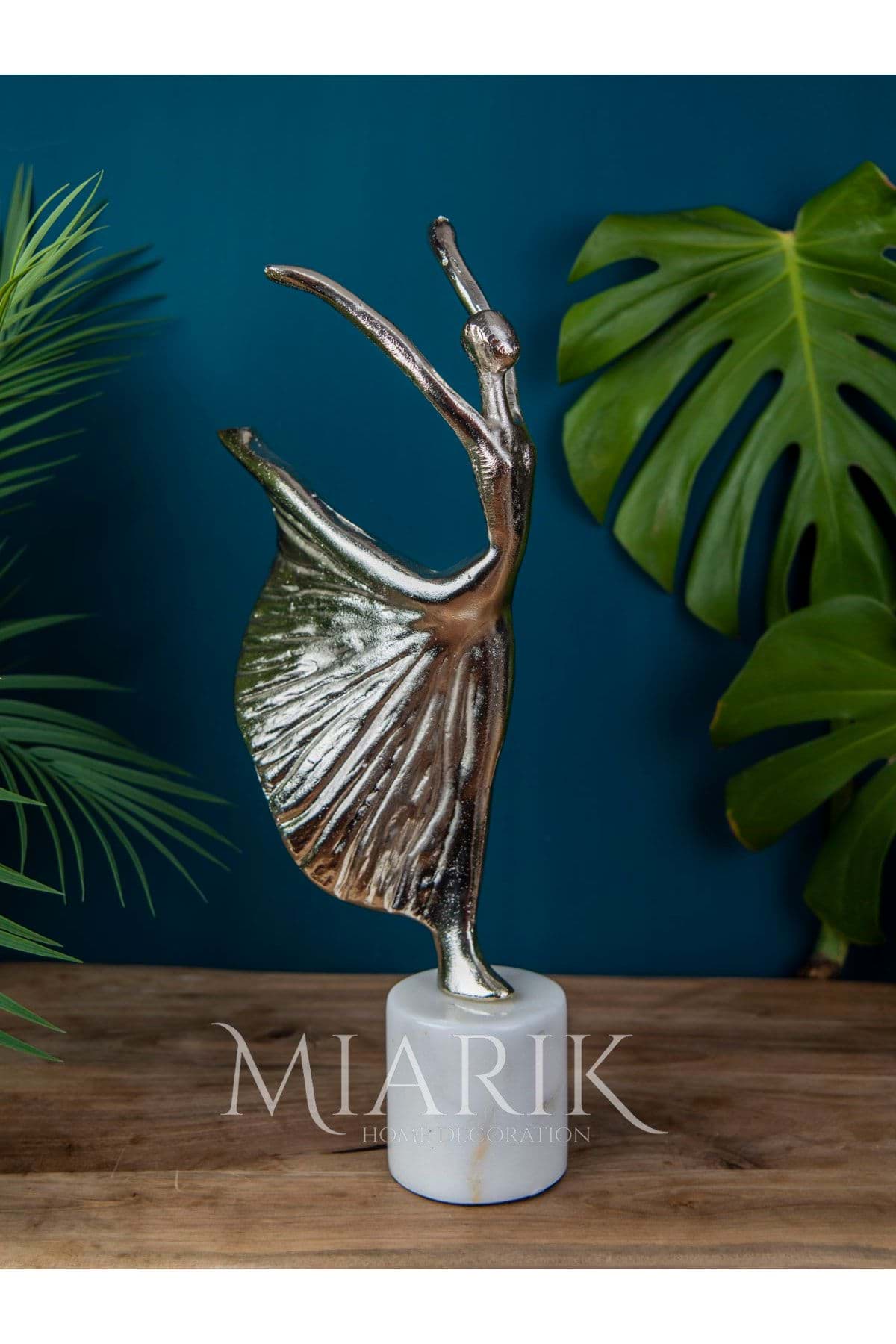 Dekoratif Beyaz Mermer Kaideli Tekli Gümüş Balerin Dekor
