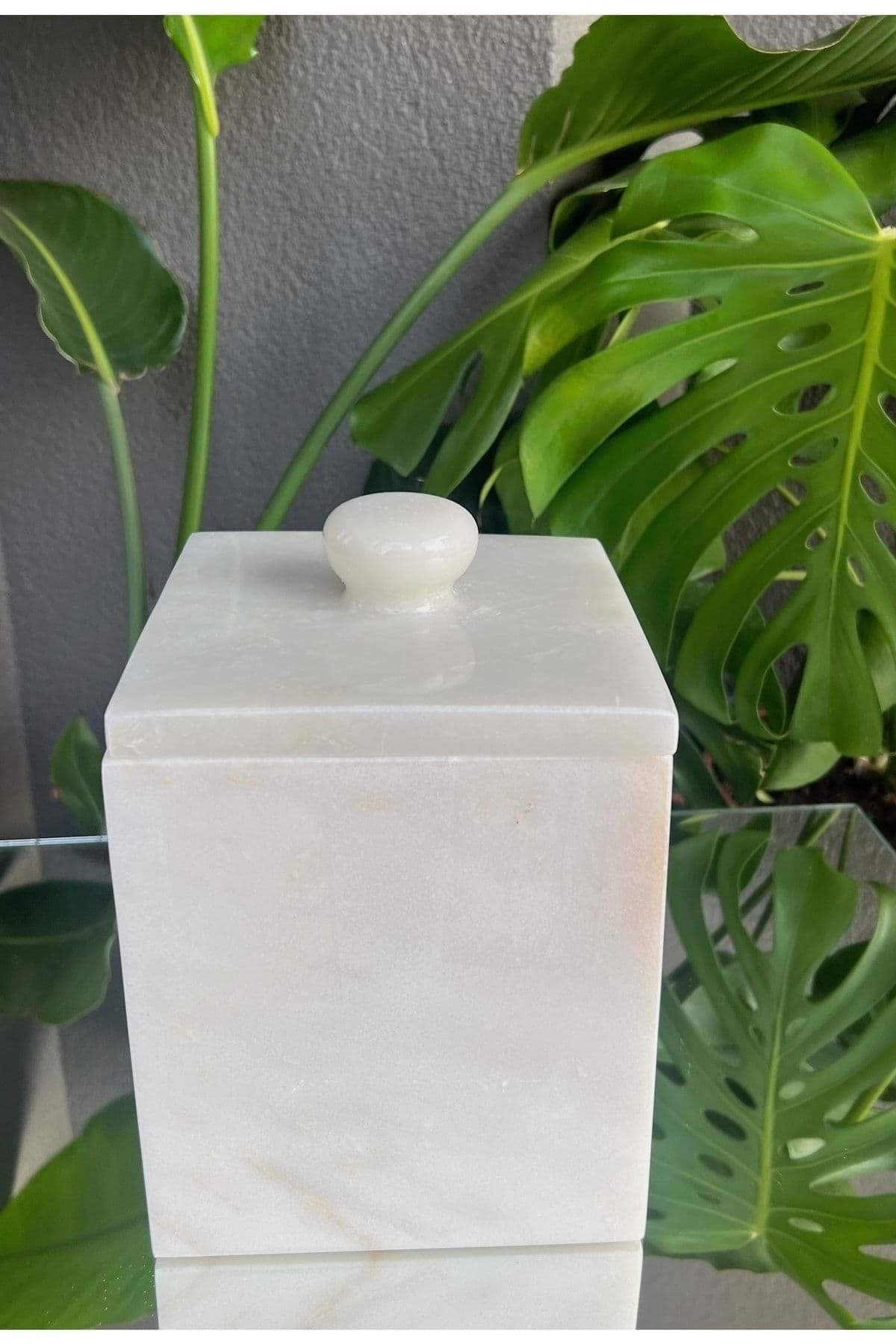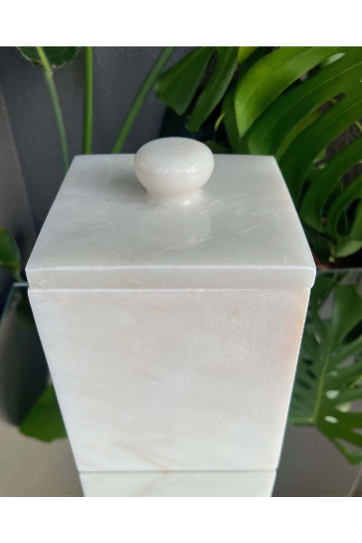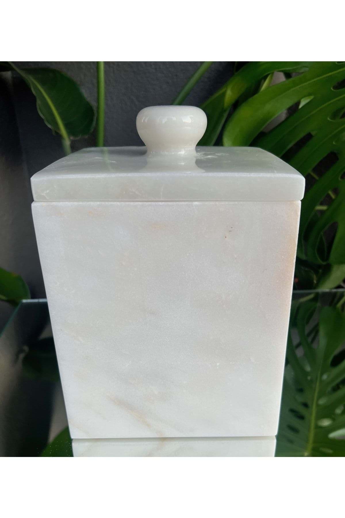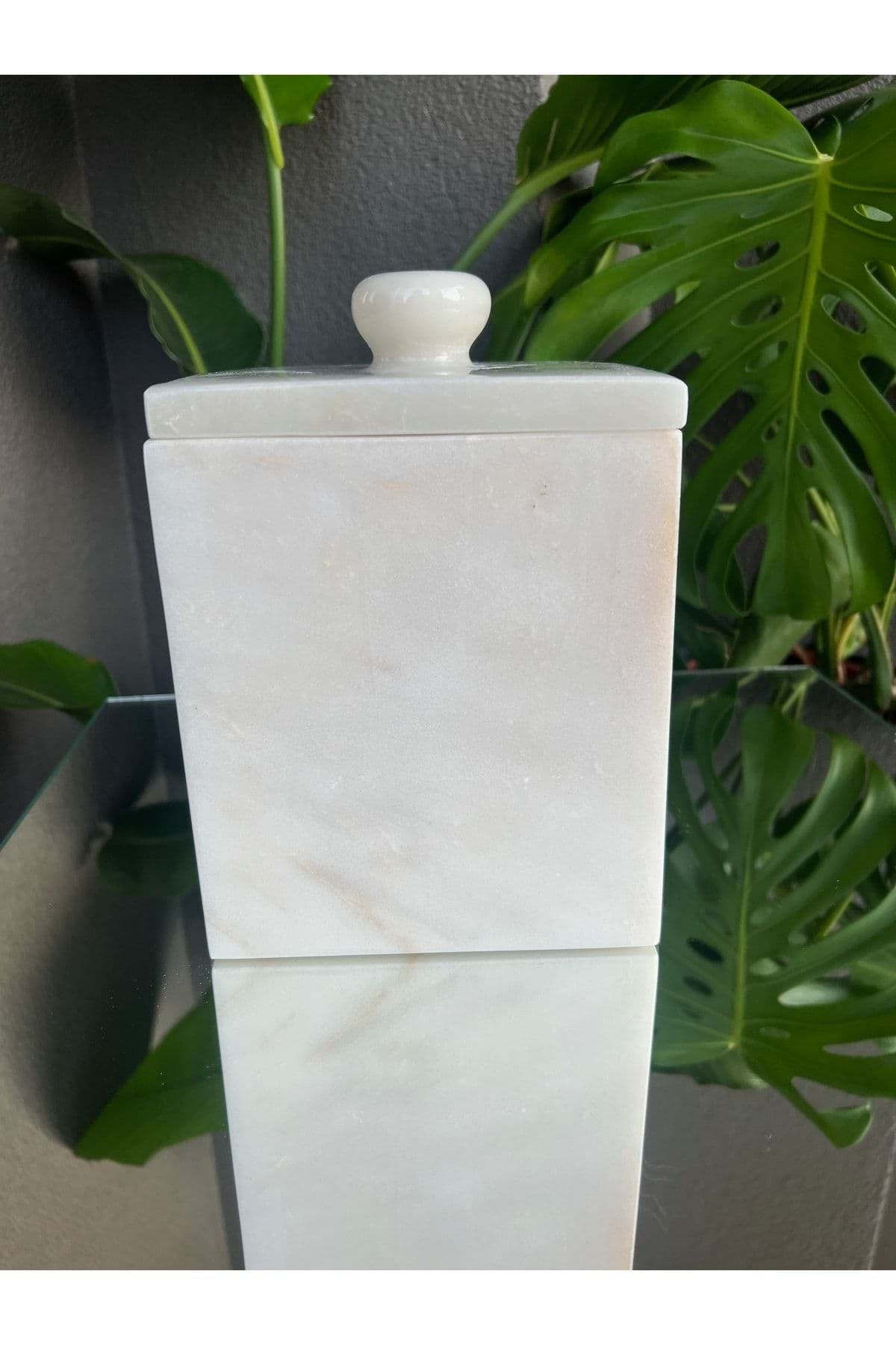 Dekoratif Beyaz Mermer Kare Çöp Kovası