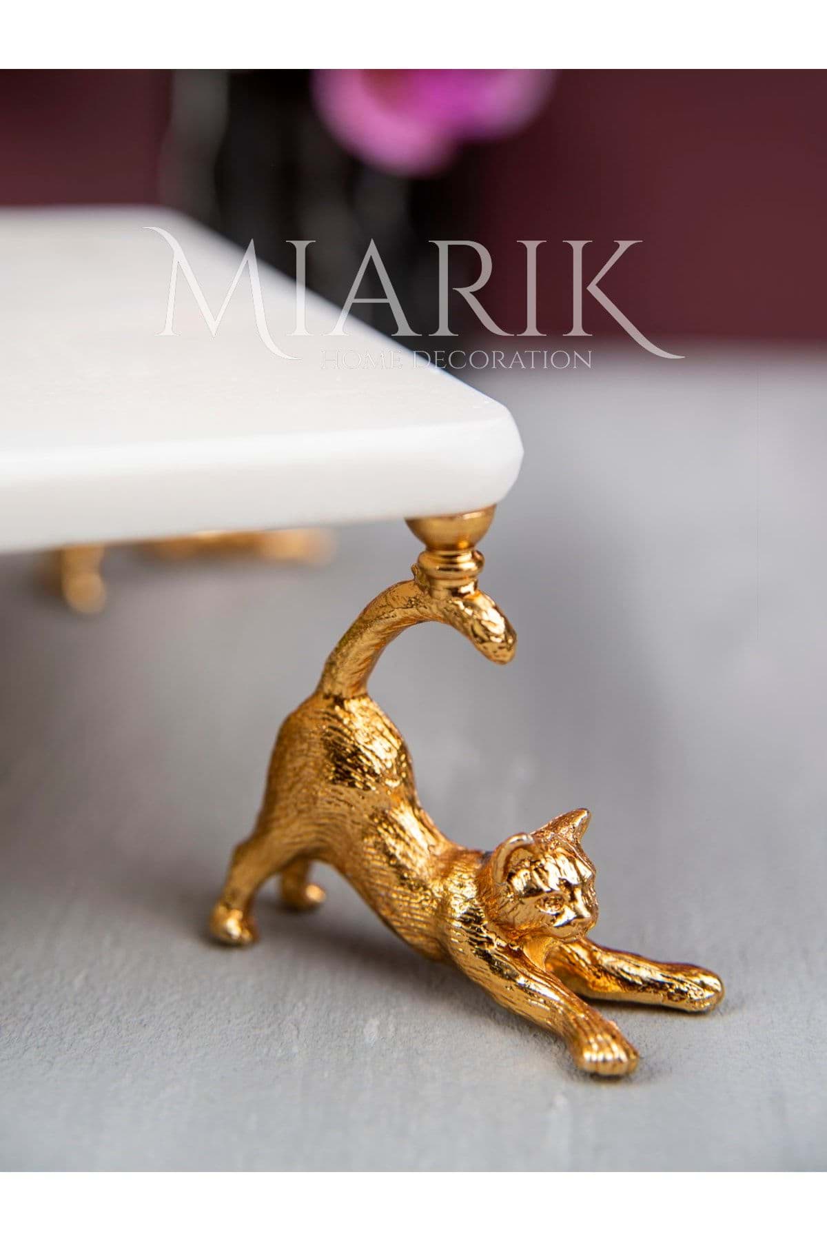 Ürün doğal mermerden üretilmiştir. ; Beyaz Renk ; Hiç bir kimyasal kullanılmamıştır. tamamen hijyeniktir. ; En 20 cm ; Boy 30 cm ; Kalınlık 2 cm ; Yerden Yüksekliği 5cm. ; Kedi Gold Renk Pirinç detaylidir ; Ürünlerimiz doğal mermerden üretildiği için renk ve doku farklılıkları söz konusu olabilir. ;