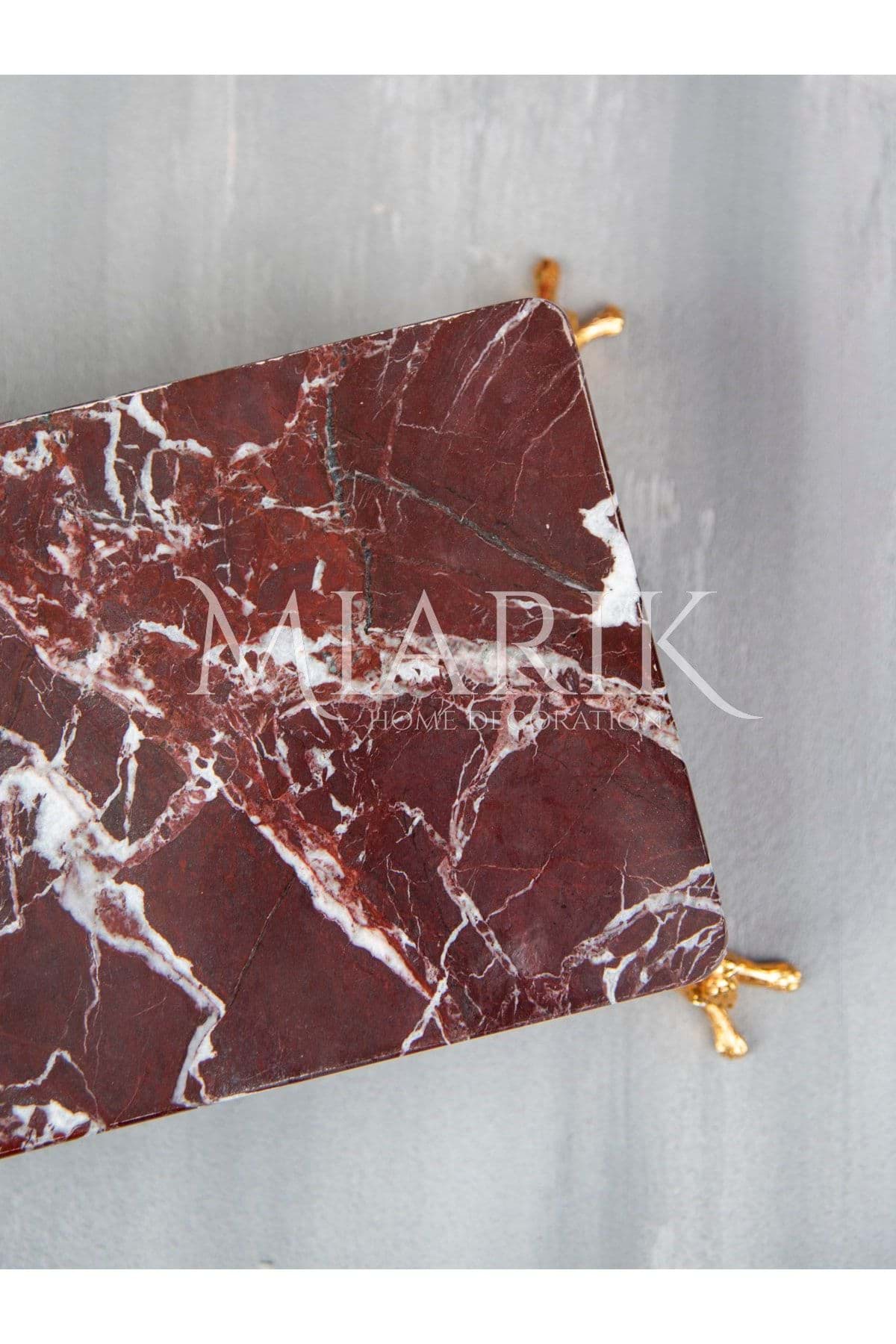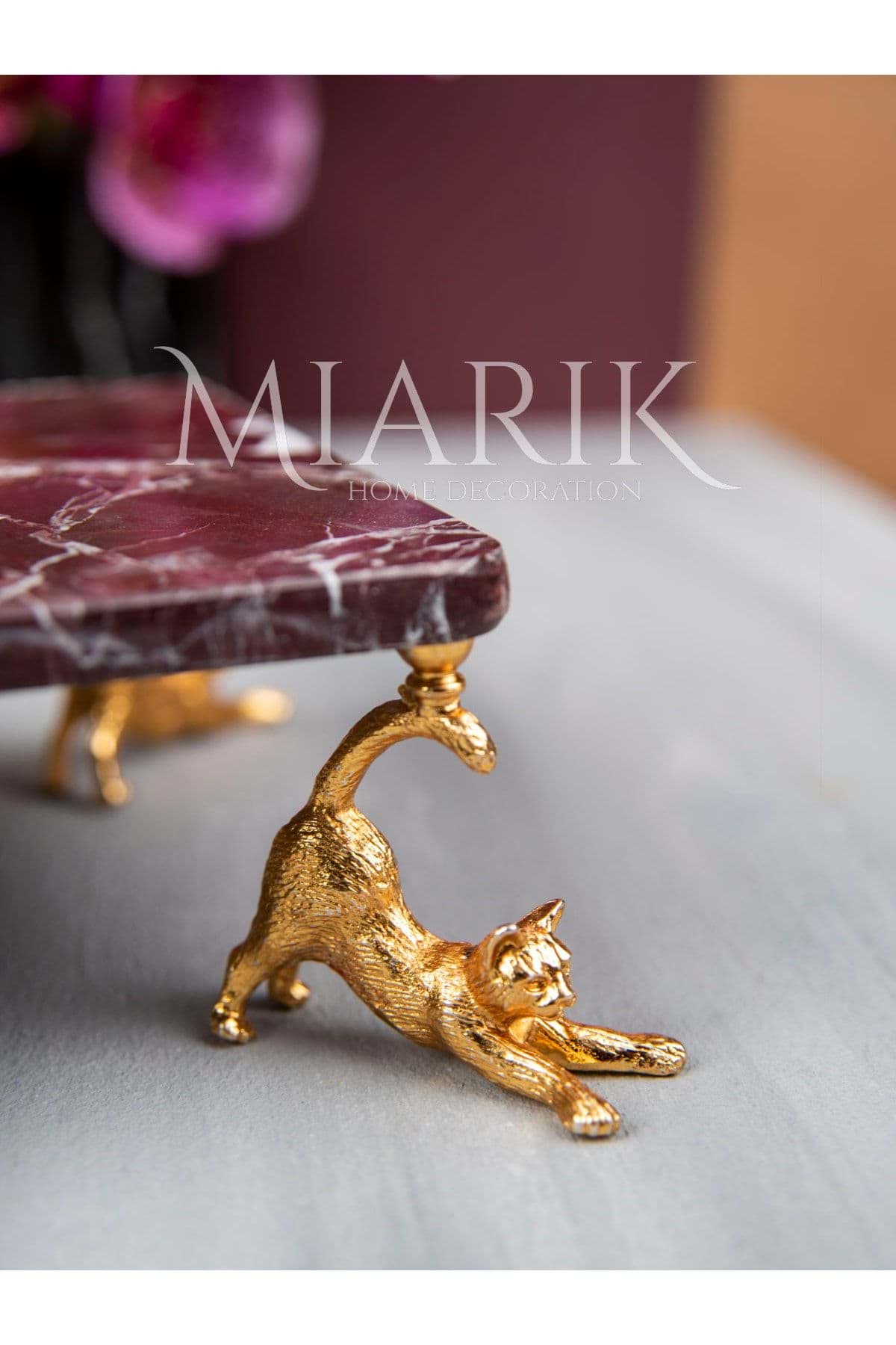 Ürün doğal mermerden üretilmiştir. ; ; Bordo Renk ; ; Hiç bir kimyasal kullanılmamıştır. tamamen hijyeniktir. ; ; En 20 cm ; ; Boy 30 cm ; ; Kalınlık 2 cm ; ; Yerden Yüksekliği 5cm. ; ; Kedi Gold Renk Pirinç detaylidir ; ; Ürünlerimiz doğal mermerden üretildiği için renk ve doku farklılıkları söz konusu olabilir. ; ;