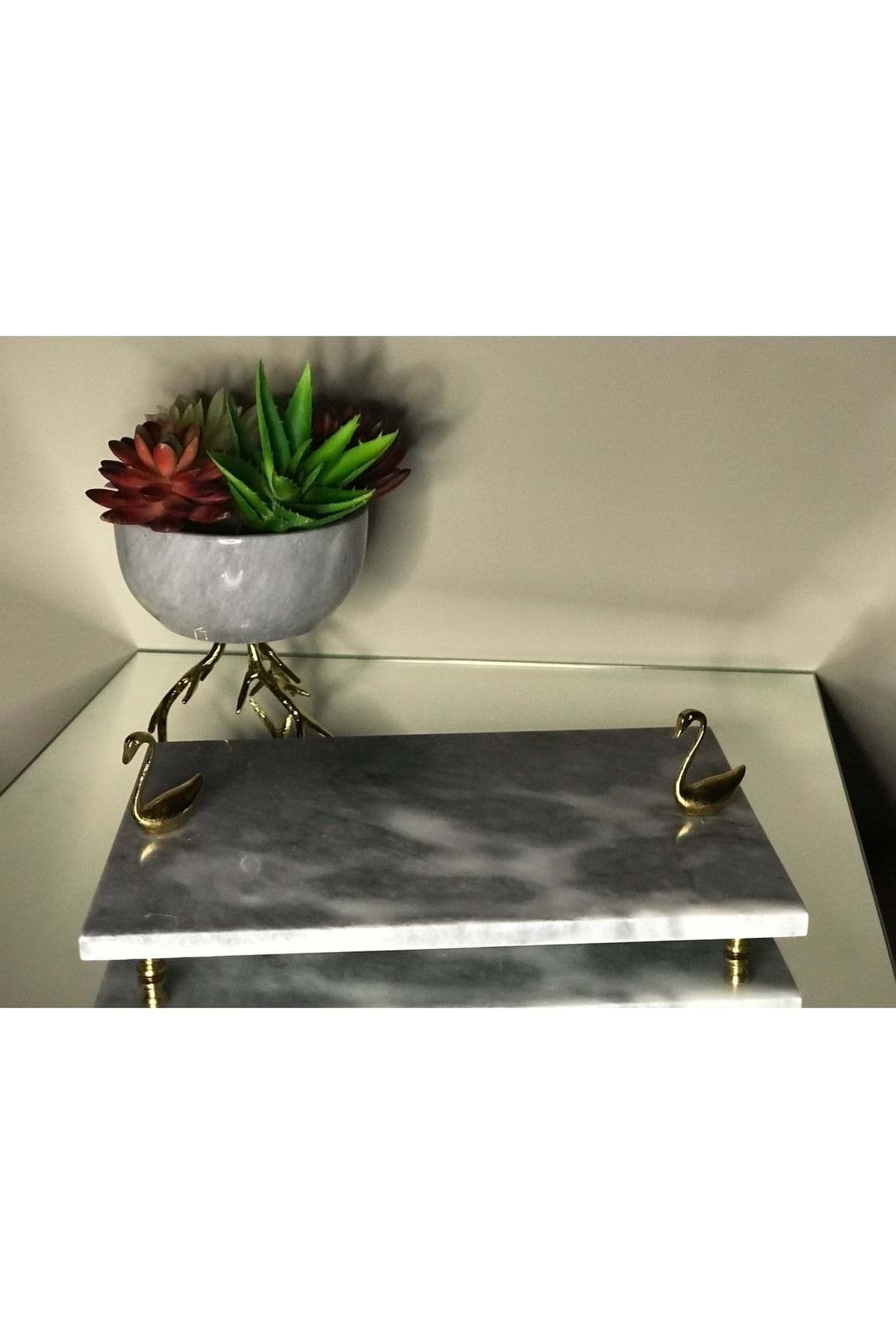 • Dekoratif Gri Mermer Dikdörtgen Gold Kugu Detaylı Sunum Tepsısı Servis Tabağı resmi