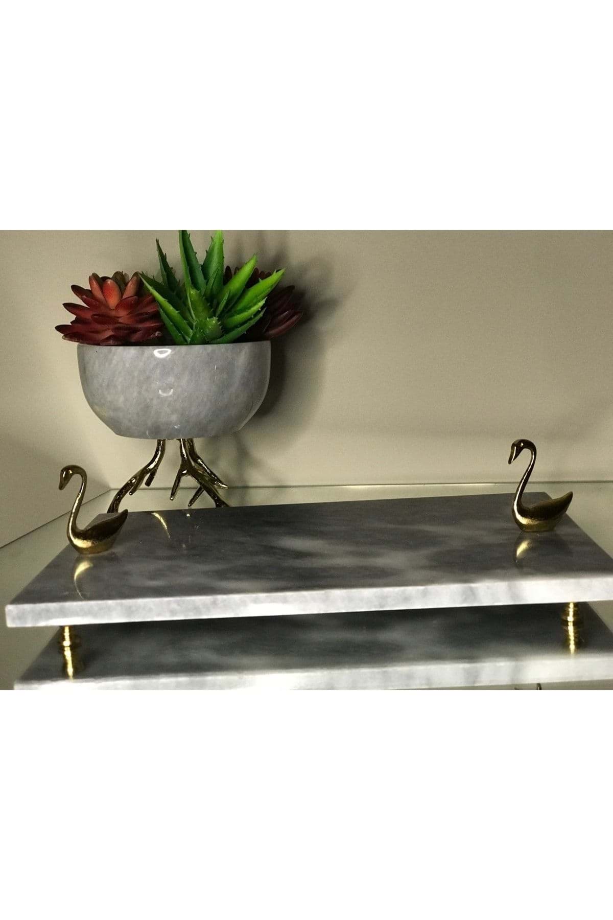 Dekoratif Gri Mermer Dikdörtgen Gold Kugu Detaylı Sunum Tepsısı Servis Tabağı