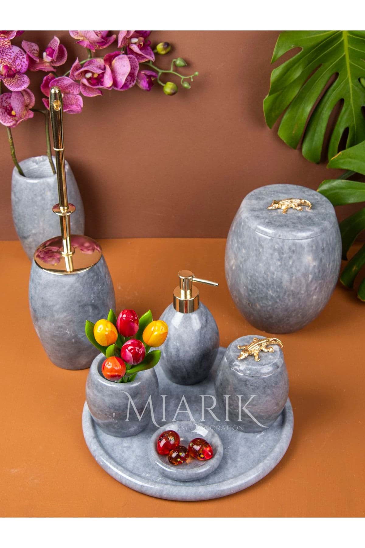 Dekoratif Mermer Banyo Seti Takımı 7 Li Aksesuar Detaylı Tasarım Set