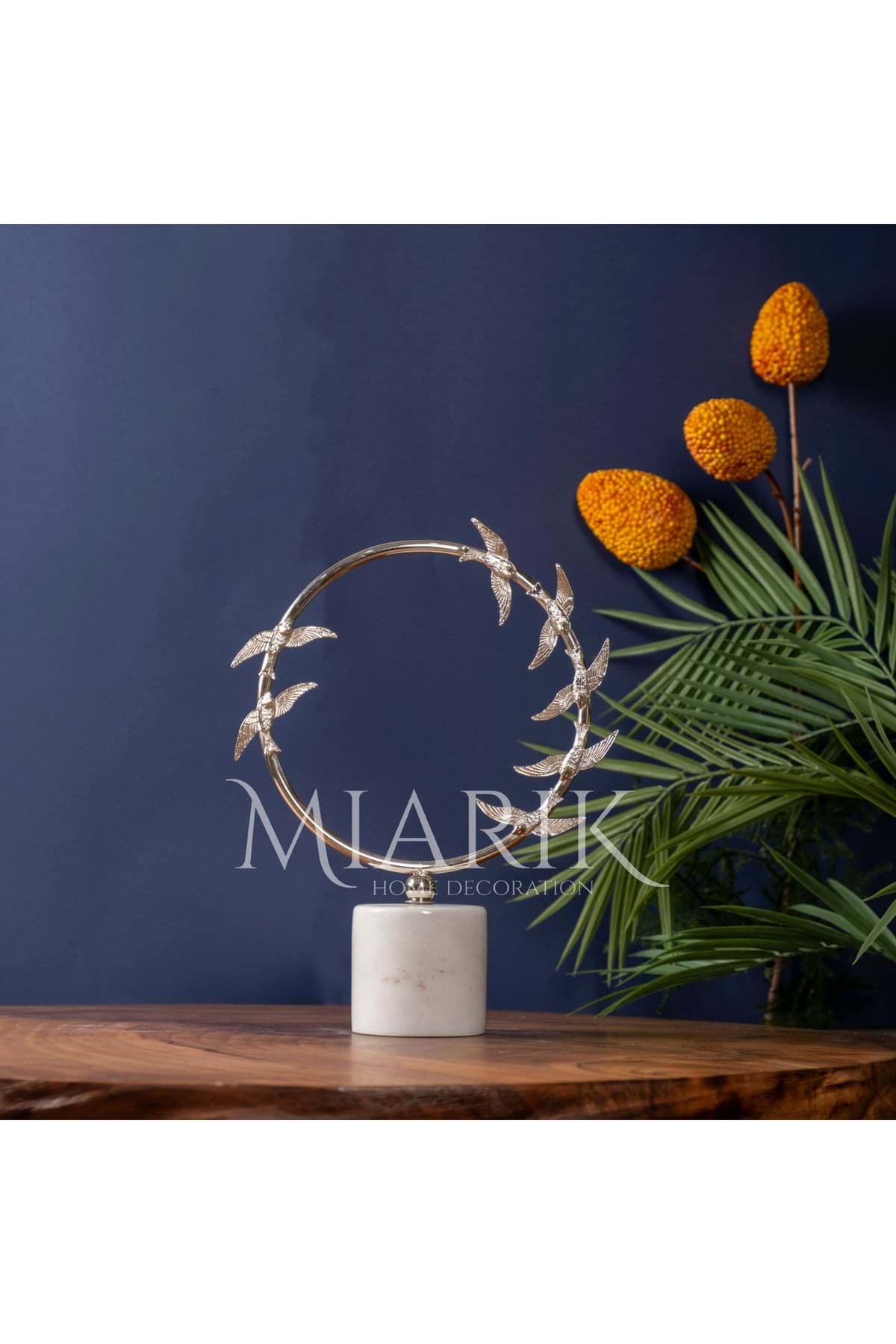 Dekoratif Siram Kus Dekor Obje Mermer Uzerine Pirinc aksesuar detaylidir