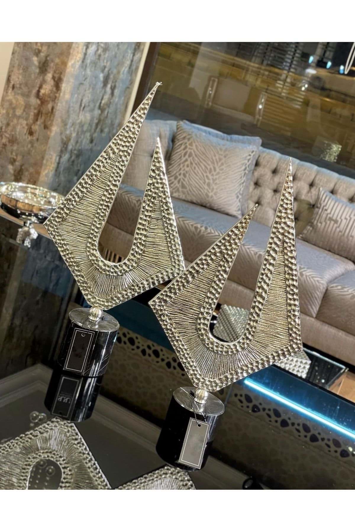 Modern dekorasyonun vazgeçilmez bir parçası olan bu siyah mermer kaideli yelken obje, metal malzemesiyle dayanıklılığı ve şıklığı bir arada sunar; Metal yapısı sayesinde uzun ömürlü kullanım vaat ederken, modern tasarımı ile mekanınıza çağdaş bir hava katar; Siyah mermer kaideli yapısı, hem fonksiyonel hem de estetik bir görünüm sağlayarak dekoratif objeler arasında öne çıkar;