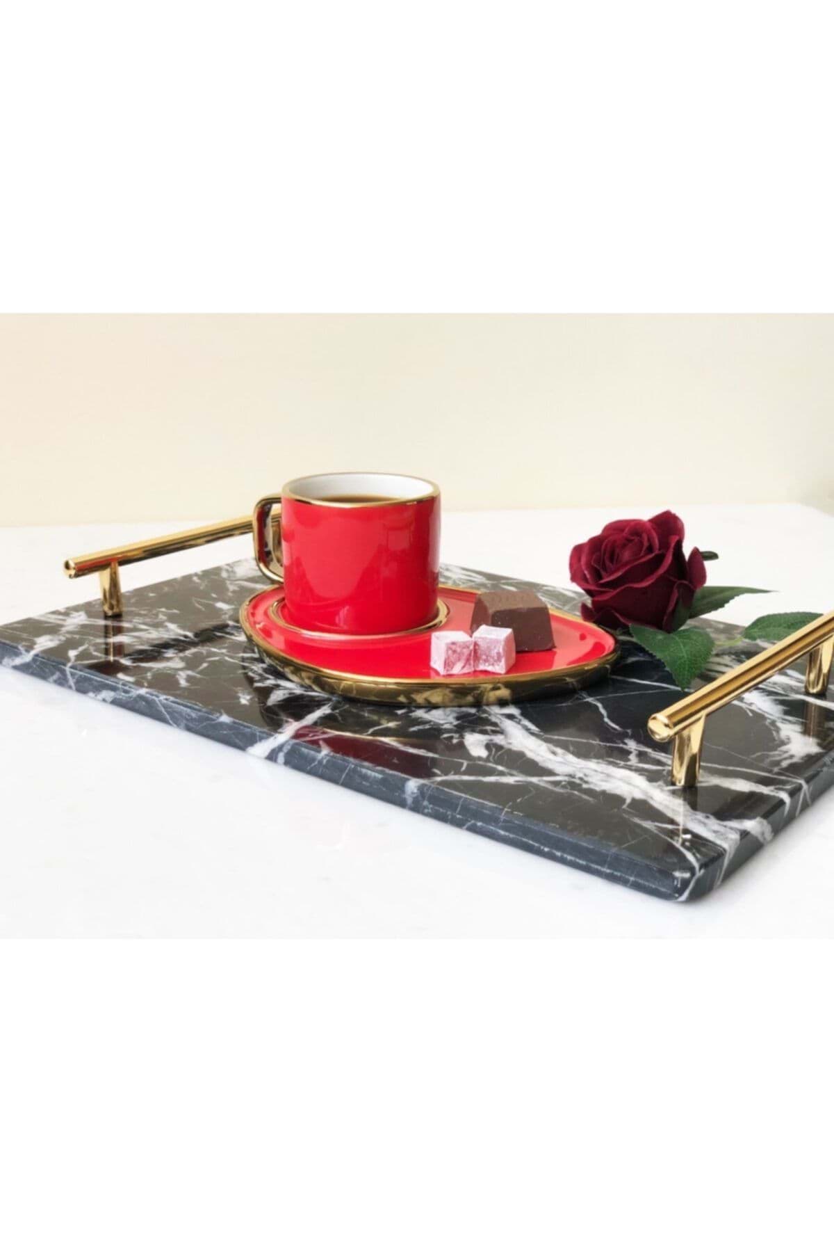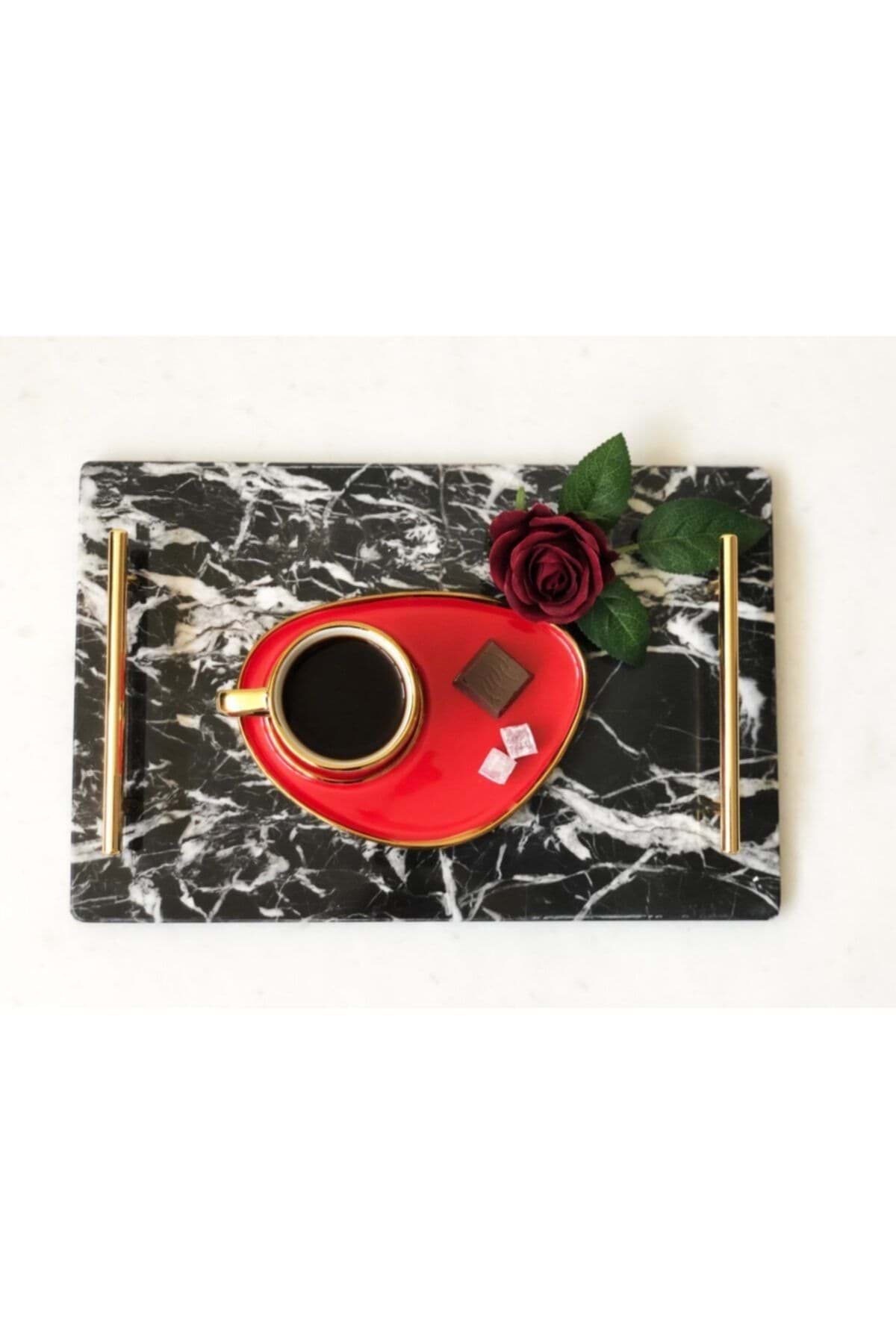 • Dekoratıf Sıyah Mermer Orta Boy Dıkdortgen Sunum Nısan Tepsısı resmi