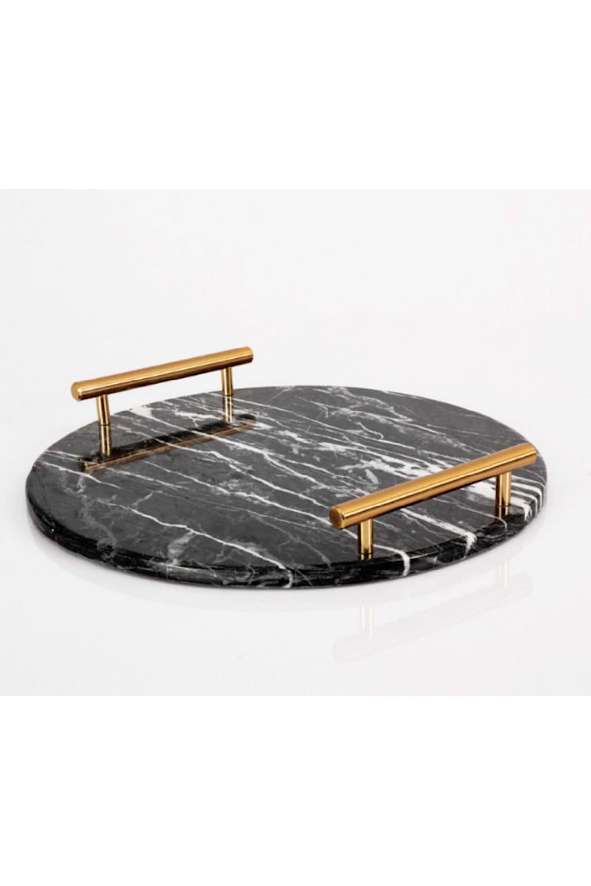 Dekoratıf Sıyah Mermer Sunum Nısan Tepsısı