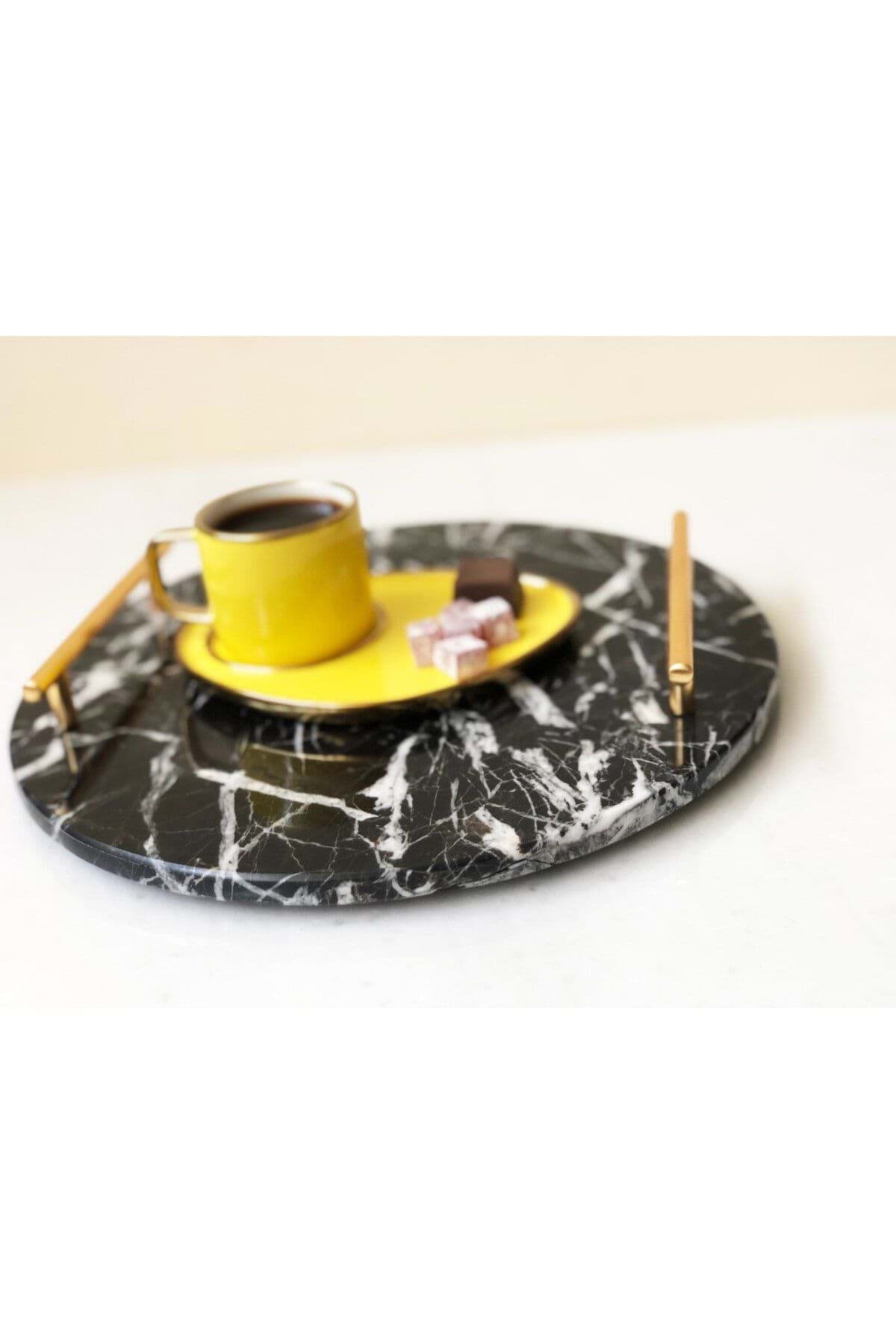 Dekoratıf Sıyah Mermer Sunum Nısan Tepsısı resmi