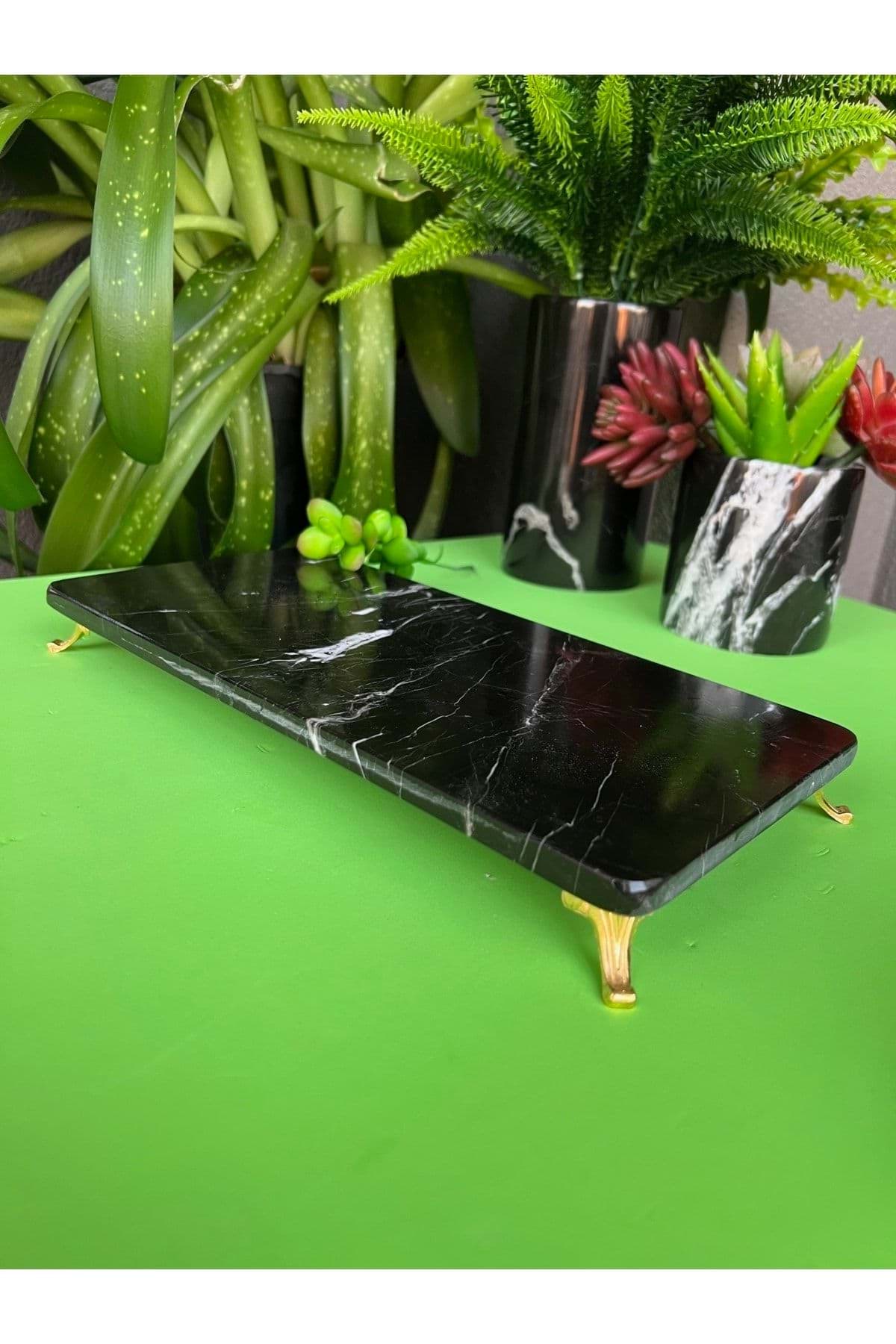 Tek parça halinde sunulan bu dekoratif siyah mermer sunum seti, minimalist ve şık bir görünüm sunar; Yüksek kaliteli mermer materyali ile üretilmiş olup, dayanıklılığı ve estetik duruşu ile dikkat çeker; Tek parça olarak tasarlanmış olması, kolay kullanım sağlar ve ekstra depolama alanı gerektirmez; Siyah rengiyle modern ve zarif bir atmosfer yaratırken, her türlü dekorasyonla uyum sağlar;