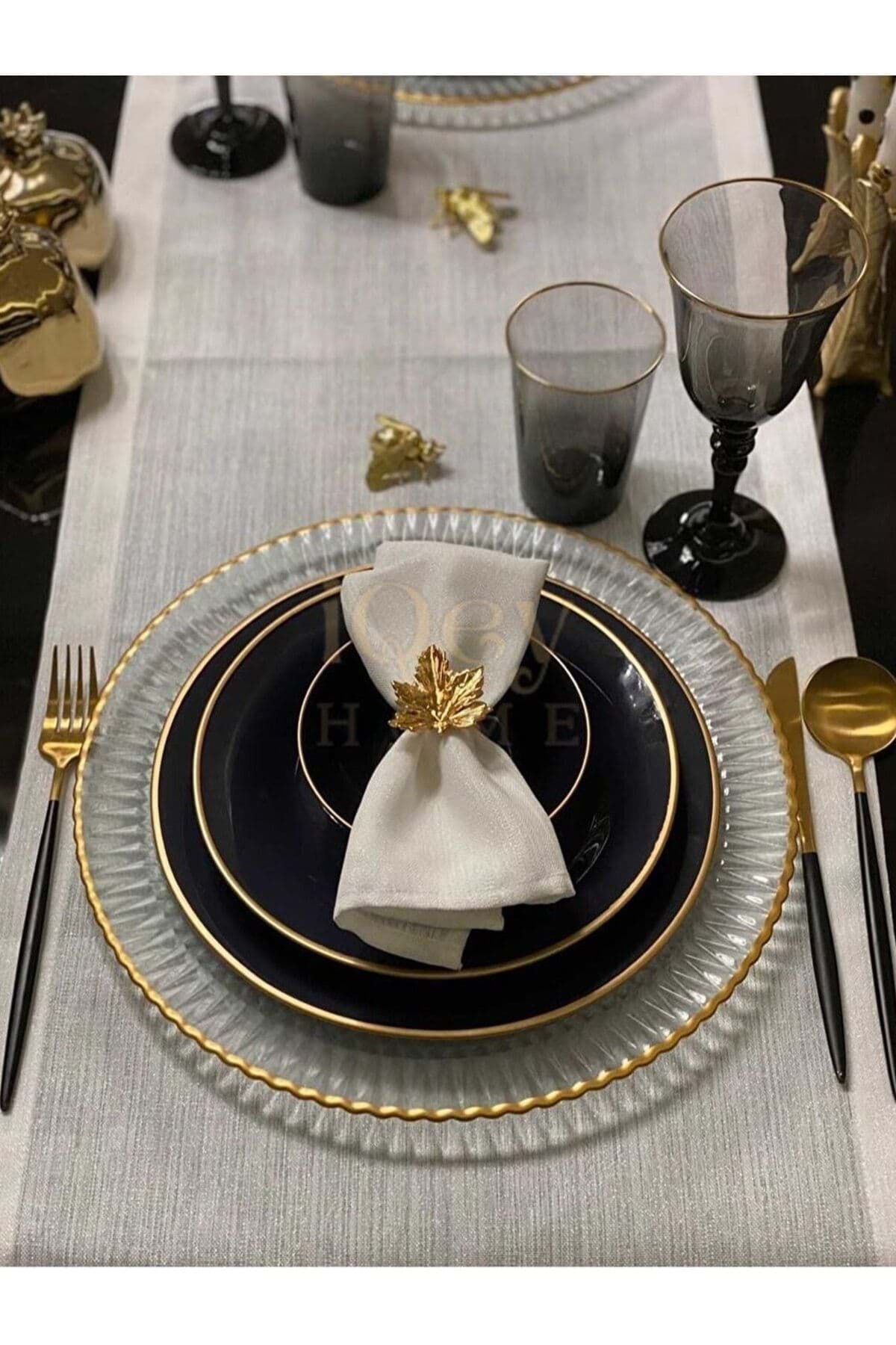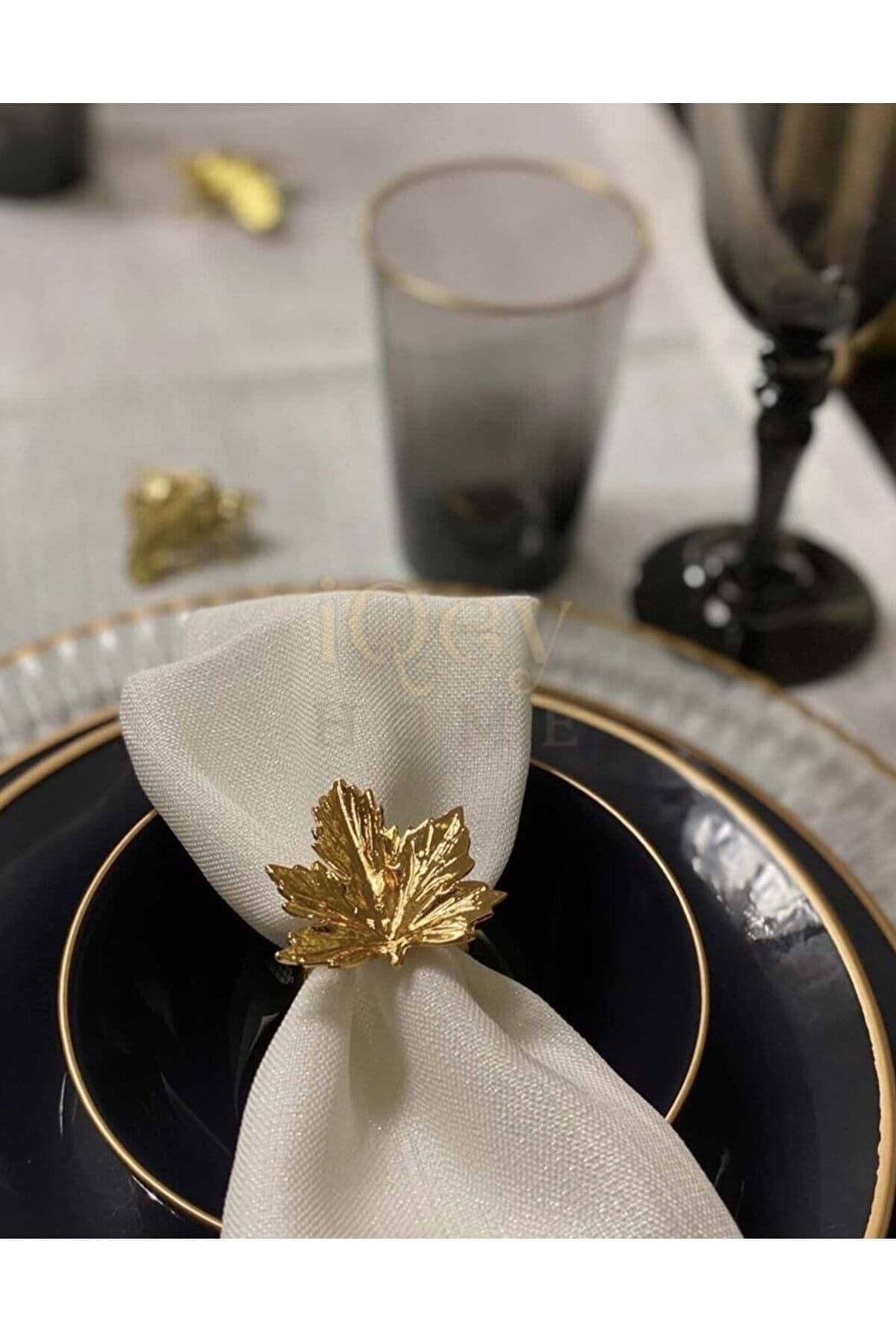 • Döküm 6’lı Çınar Yaprağı Peçete Halkası Peçete Yüzüğü Gold resmi