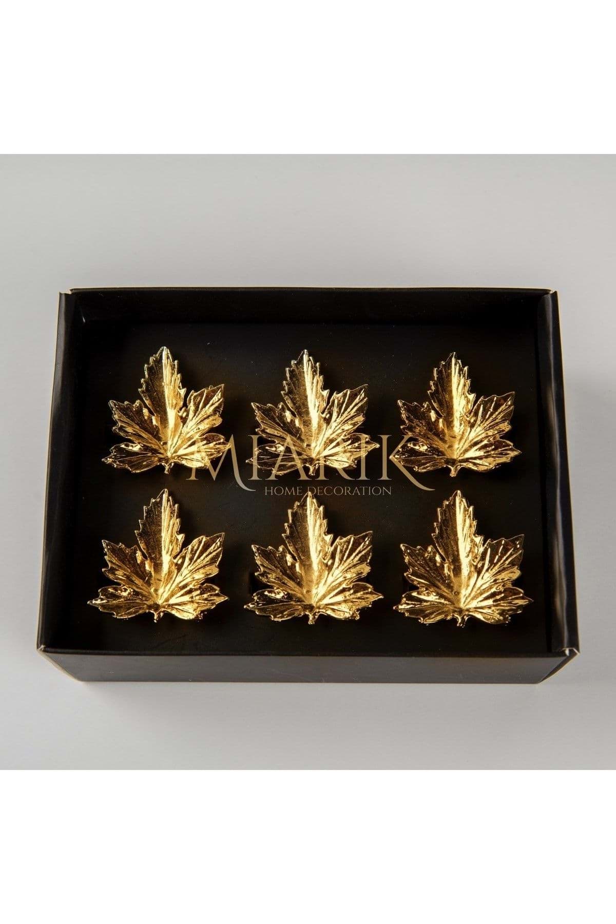 Döküm 6’lı Çınar Yaprağı Peçete Halkası Peçete Yüzüğü Gold