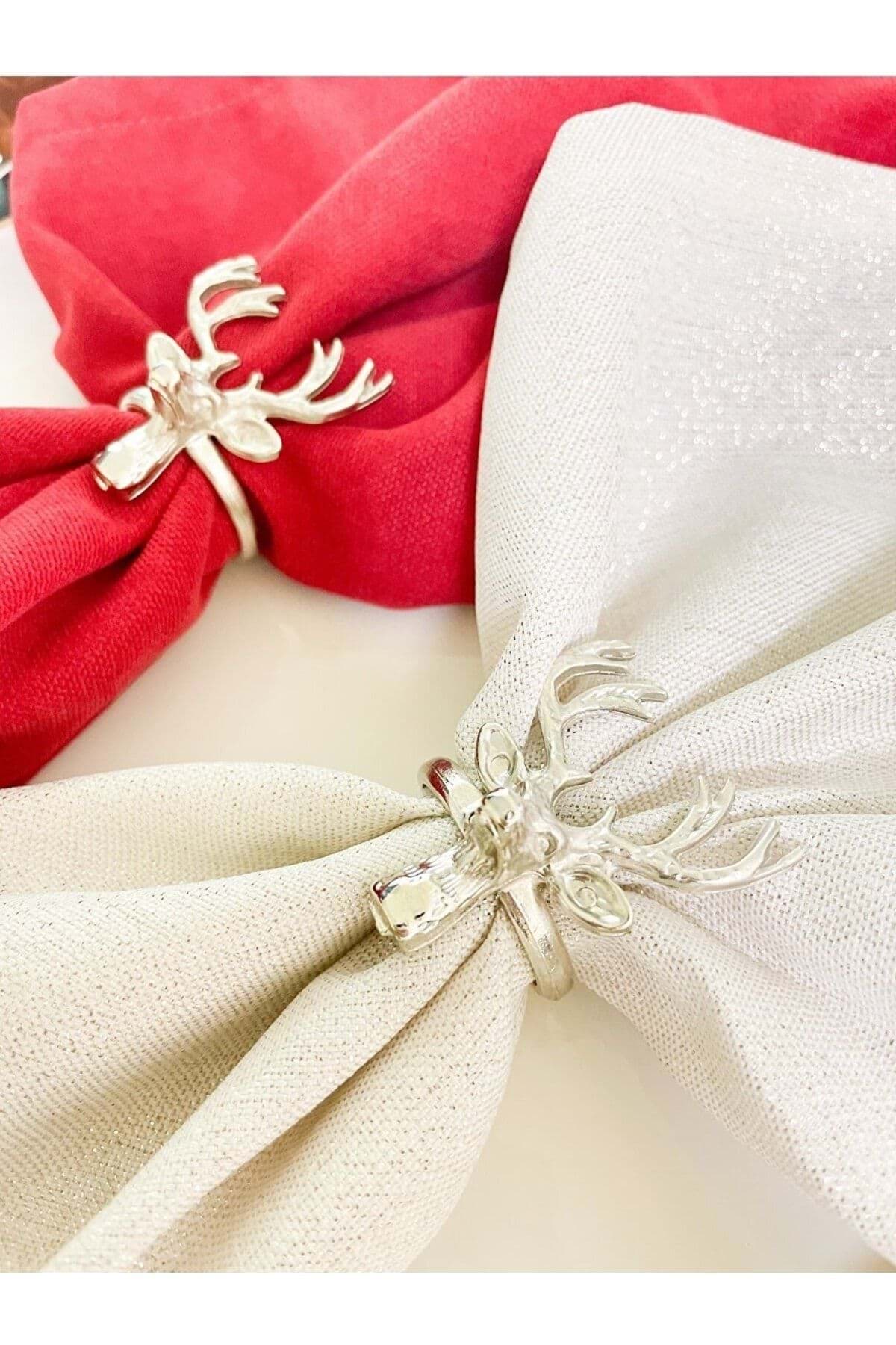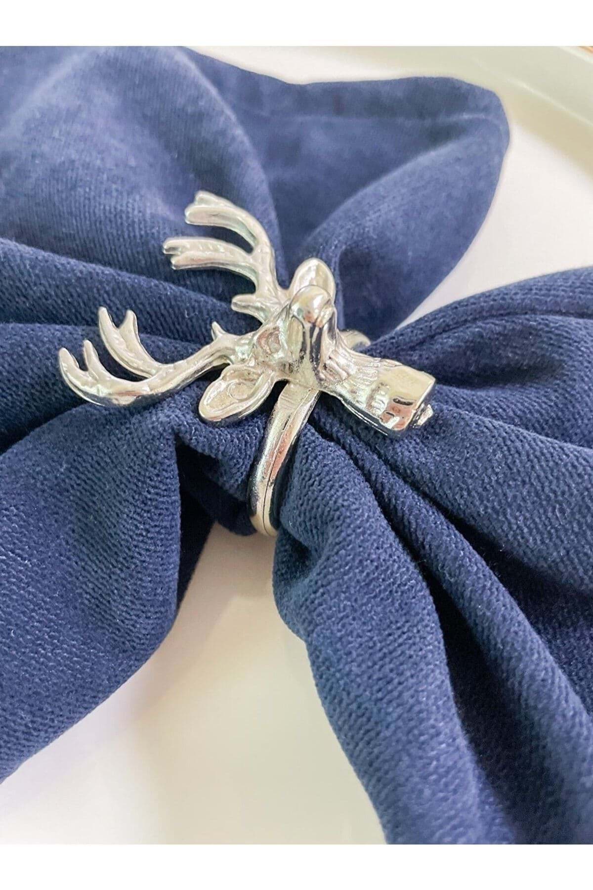 6 adet döküm peçete yüzüğü ; Geyik Figürlü ; Gümüş Renk ;