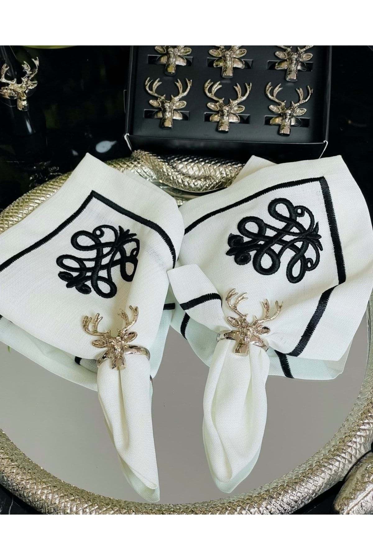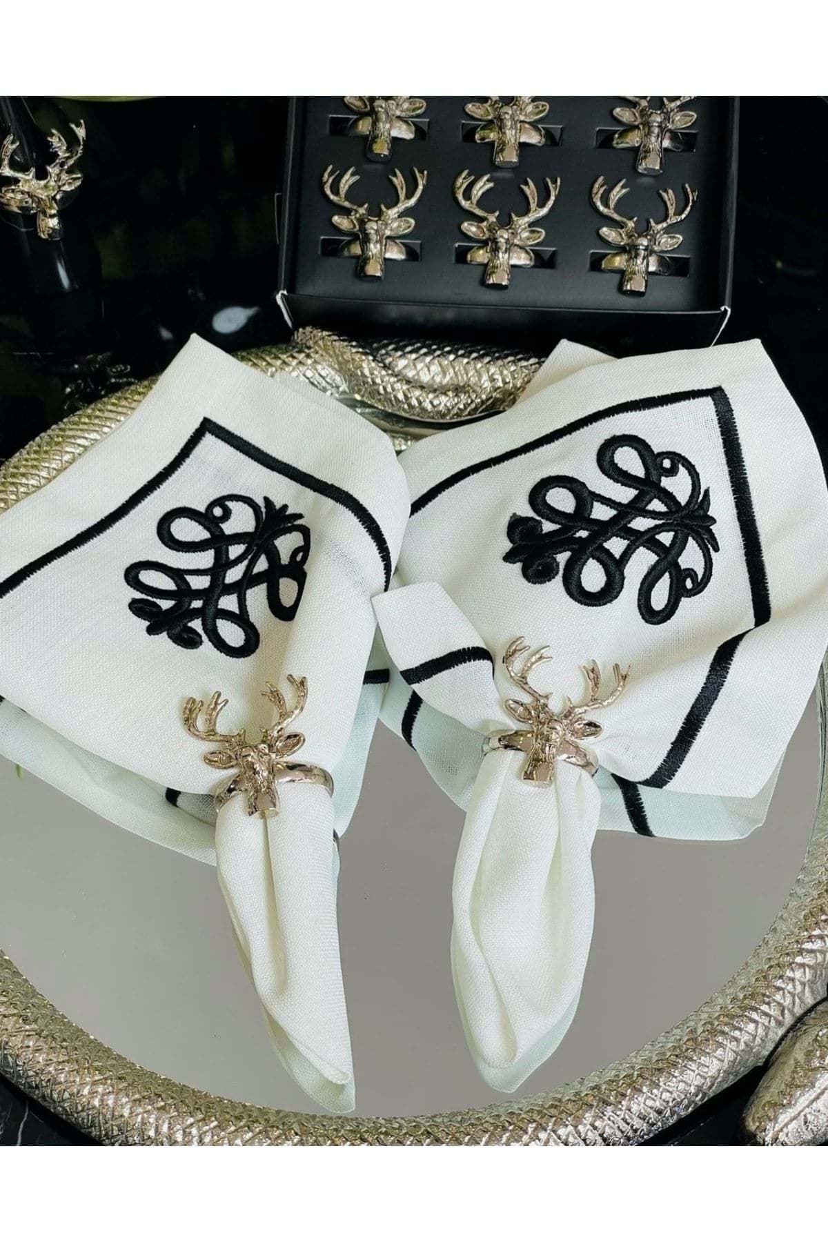 Döküm 6’lı Geyik Peçete Halkası Peçete Yüzüğü Gümüş