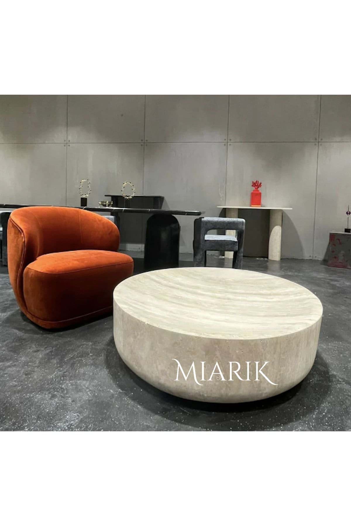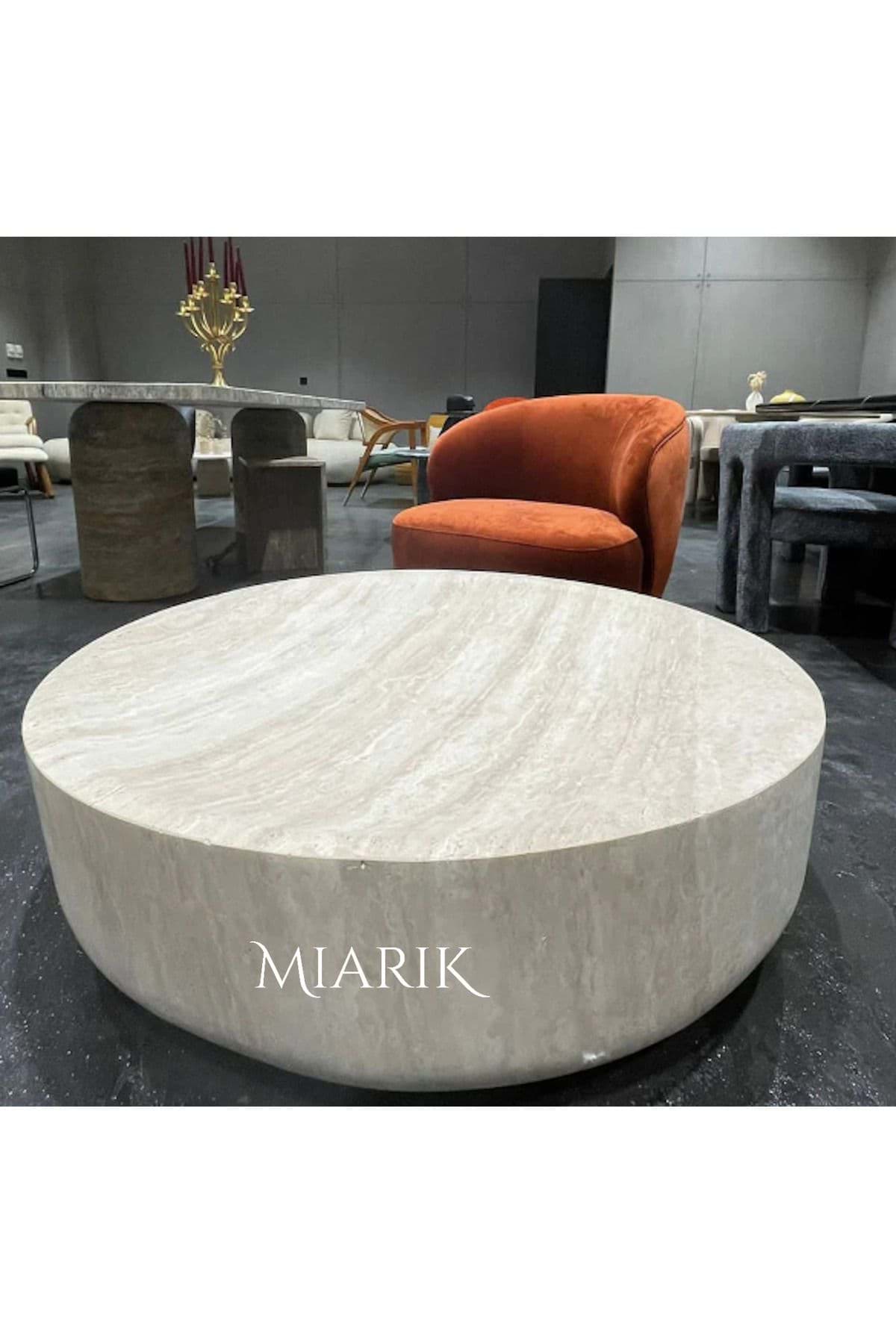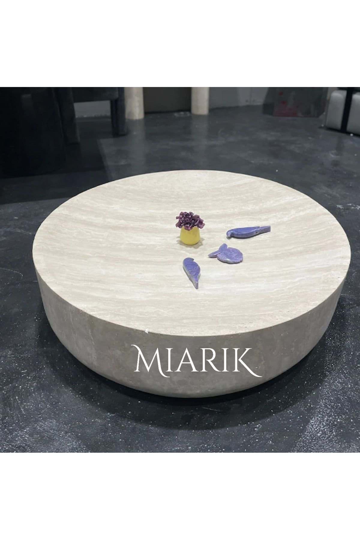 MERMER ORTA SEHPA Taş, dokusu, renk tonları ve damar yolları olan doğal bir malzeme olduğu için her bir ürünü eşsiz ve benzersiz kılıyor. Ayrıca taşın yüzeyi mat ve kendine özgü minik gözenekler bulunmaktadır. Bu farklılıklar, travertenin doğallığının bir göstergesidir. Lütfen bunları dikkate alarak sipariş veriniz. Dilerseniz taşın gözenekleri kapatılabilir, yüzeyinin ise mat ya da cilalı seçeneklerine özel sipariş ile sahip olabilirsiniz. Bizim tavsiyemiz gözenekli ve mat formda olmasıdır. Evinize doğal bir şıklık katacaktır. ; Çap:100 cm ; Yükseklik:35 cm ;