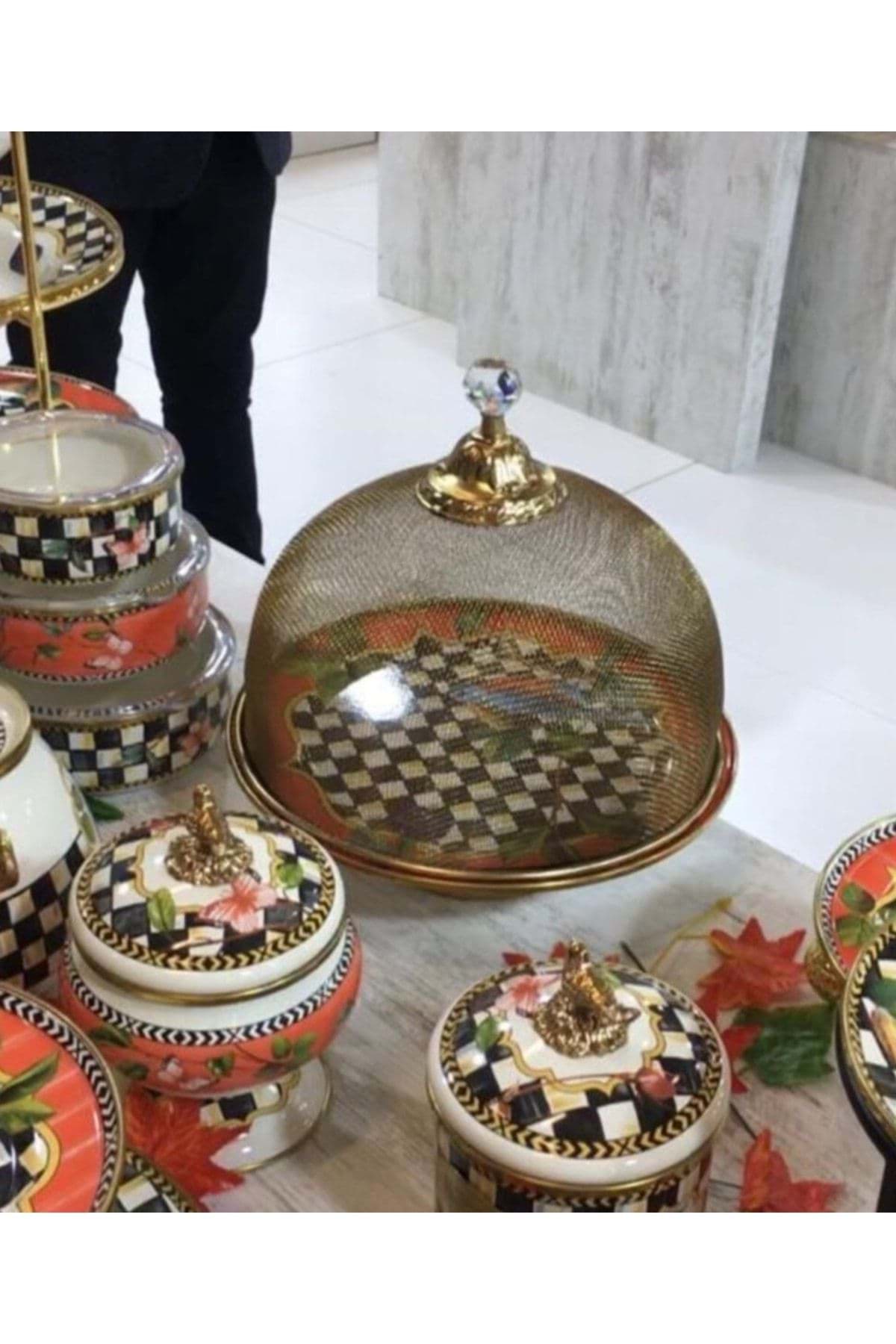 Yaşam alanlarınıza lüks bir dokunuşta bulunacak olan Servis Koruyucu Gold fanus,kapak,koruyucu Çap: 30 cm Derinlik: 17 cm TABAKLAR DAHİL DEĞİLDİR.