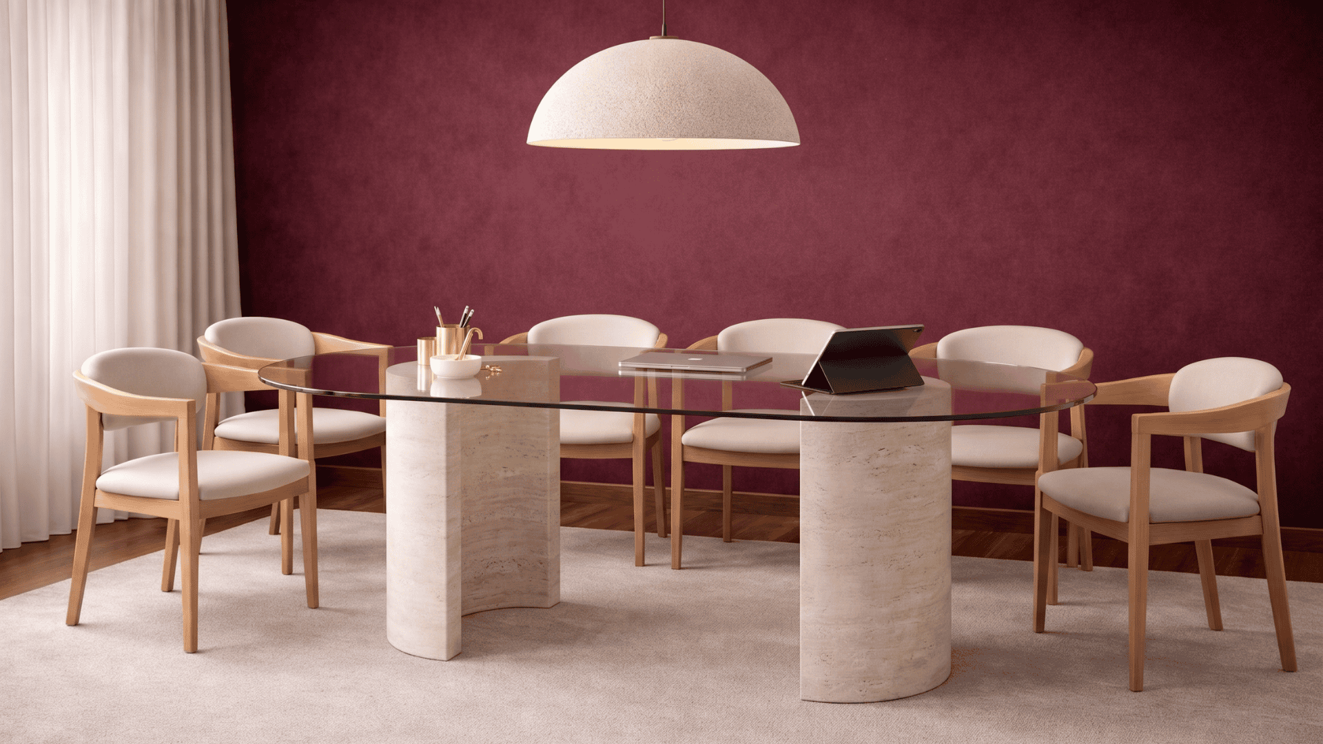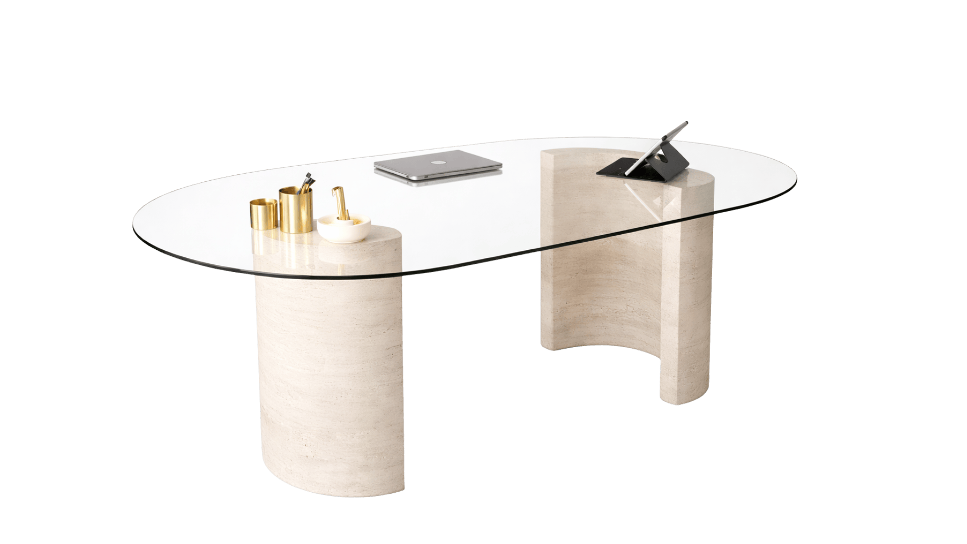 Auroracam-Traverten Mermer Yarım Ay Ayaklı Çalışma, Ofis Masası