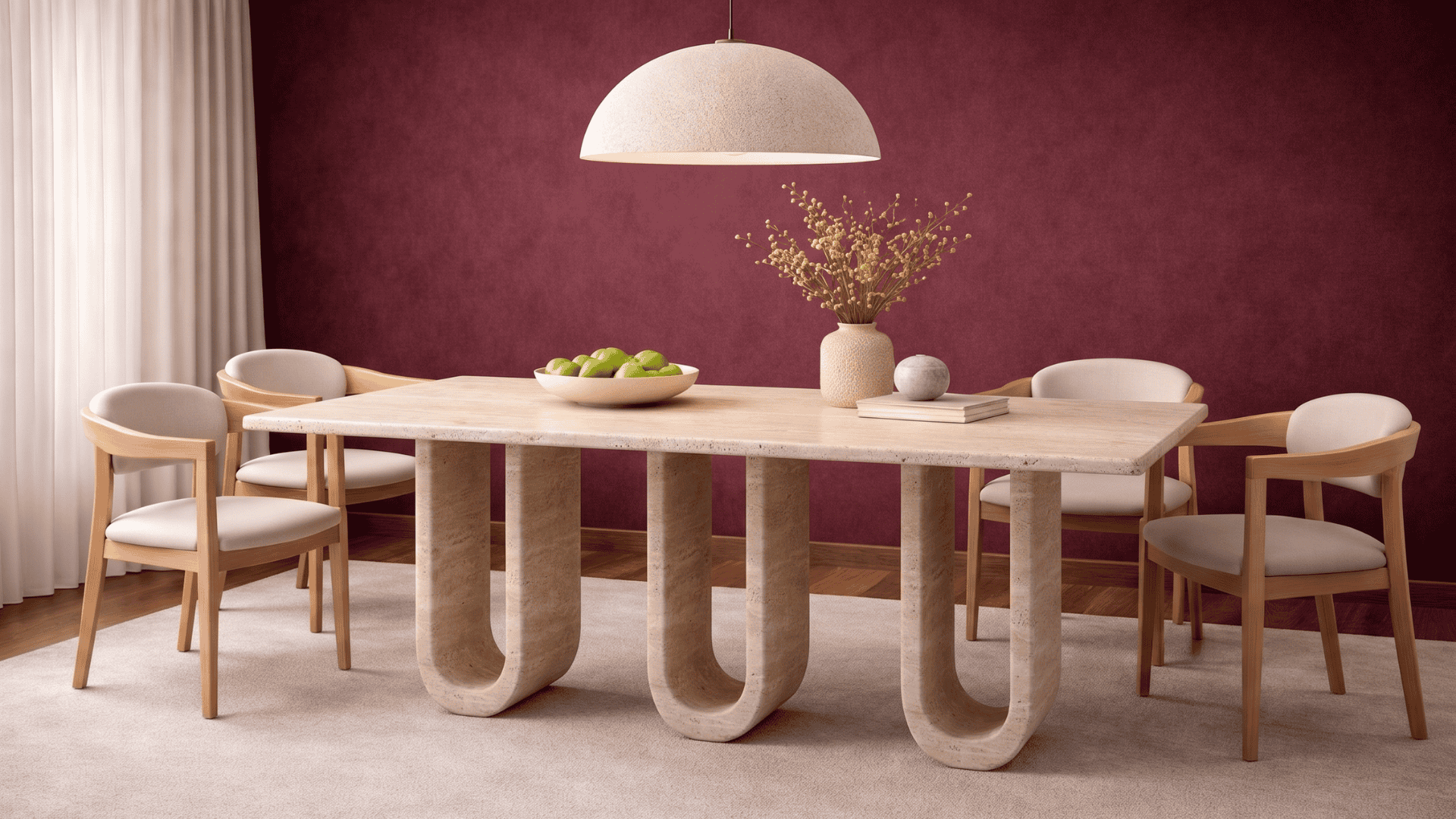 Austin -Traverten Mermer U Ayak Yemek Masası