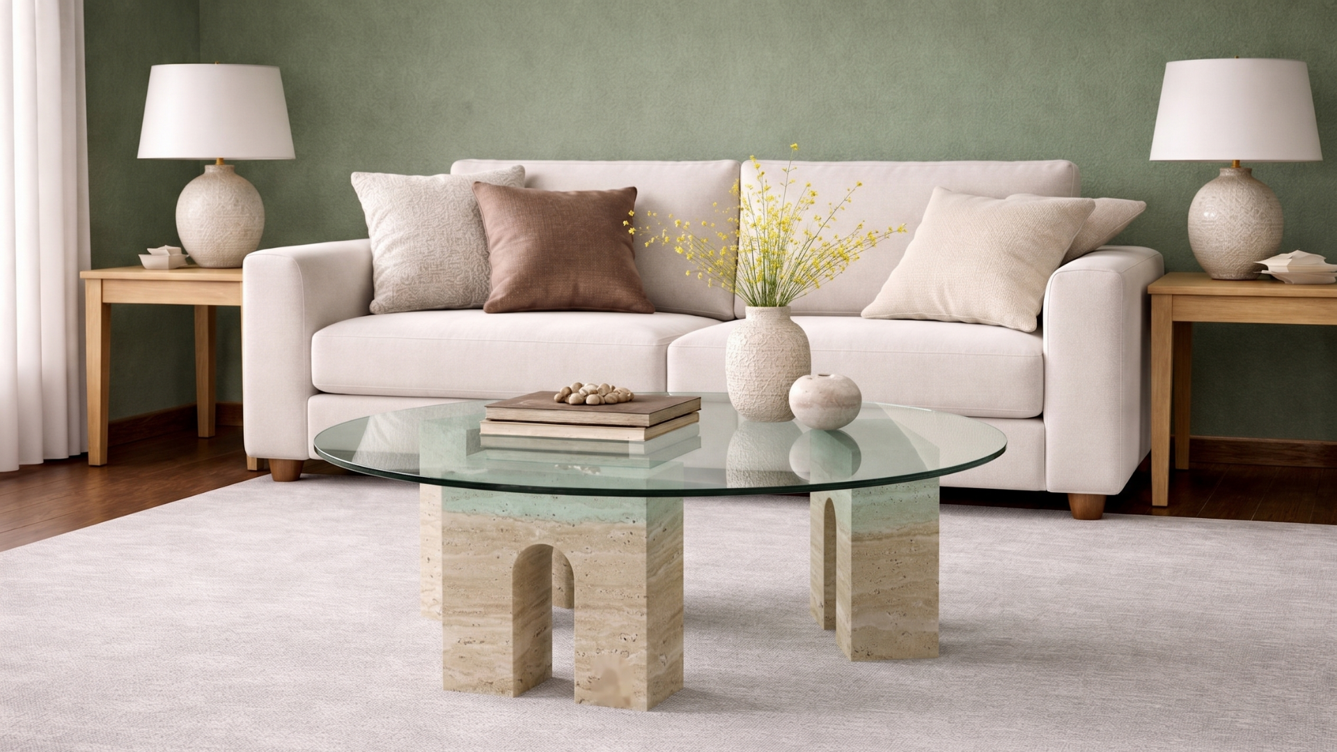 Elizabeth -Traverten Cam Lego Orta Sehpa