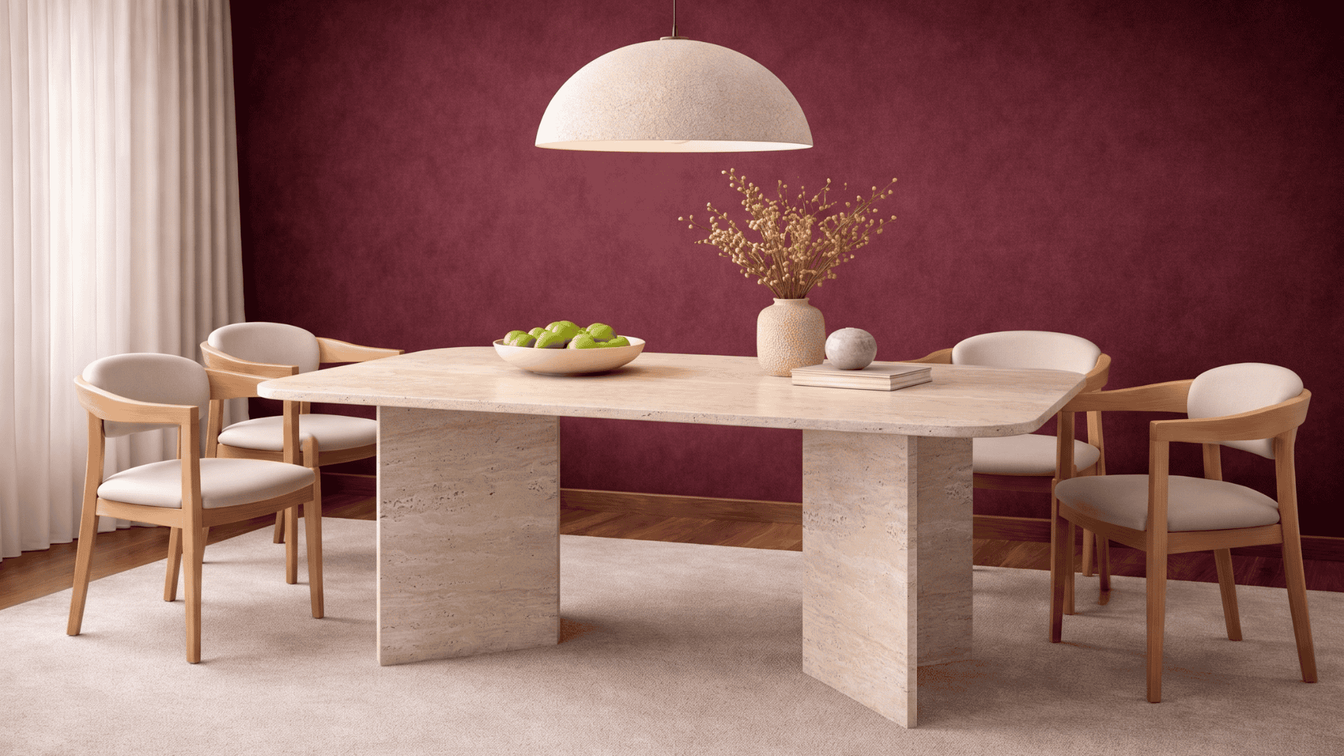 Jesse-Traverten Mermer Uzun V Ayak Yemek Masası