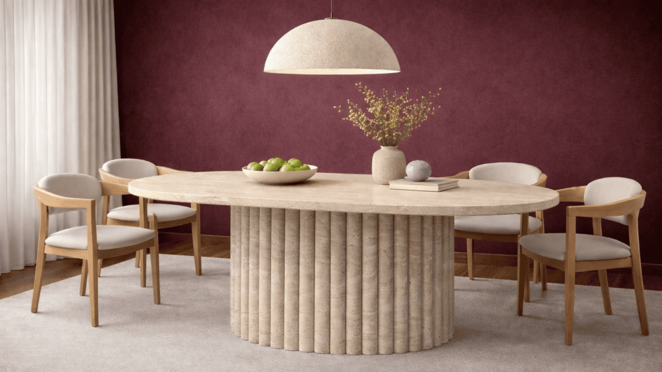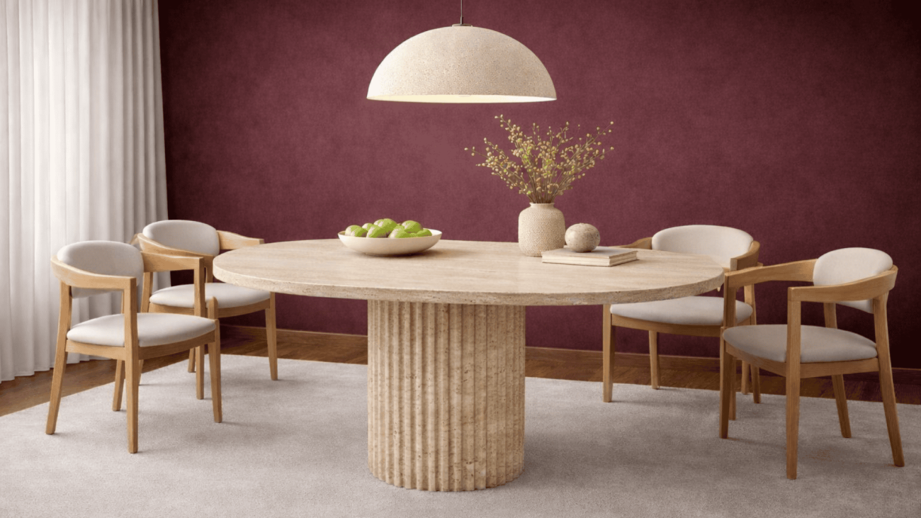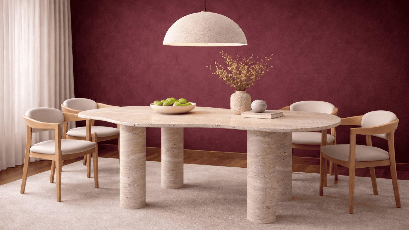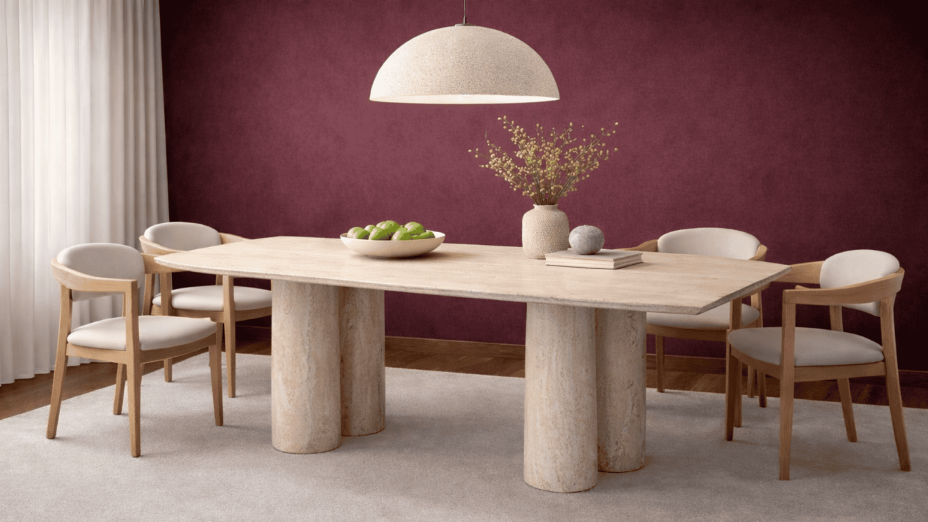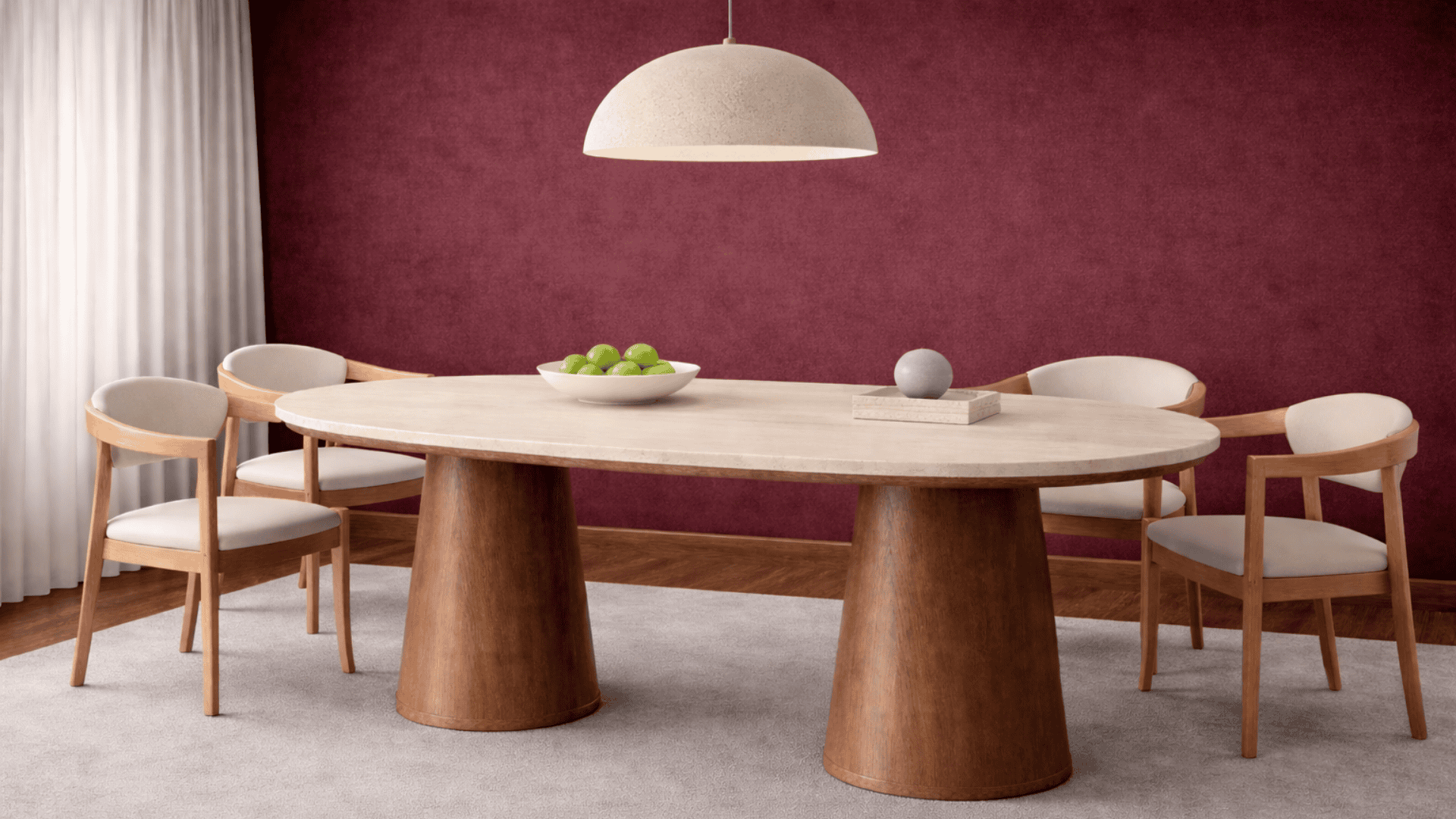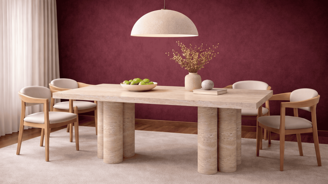Kana- Ahşap Huni Ayaklı Traverten Mermer Yemek Masası
