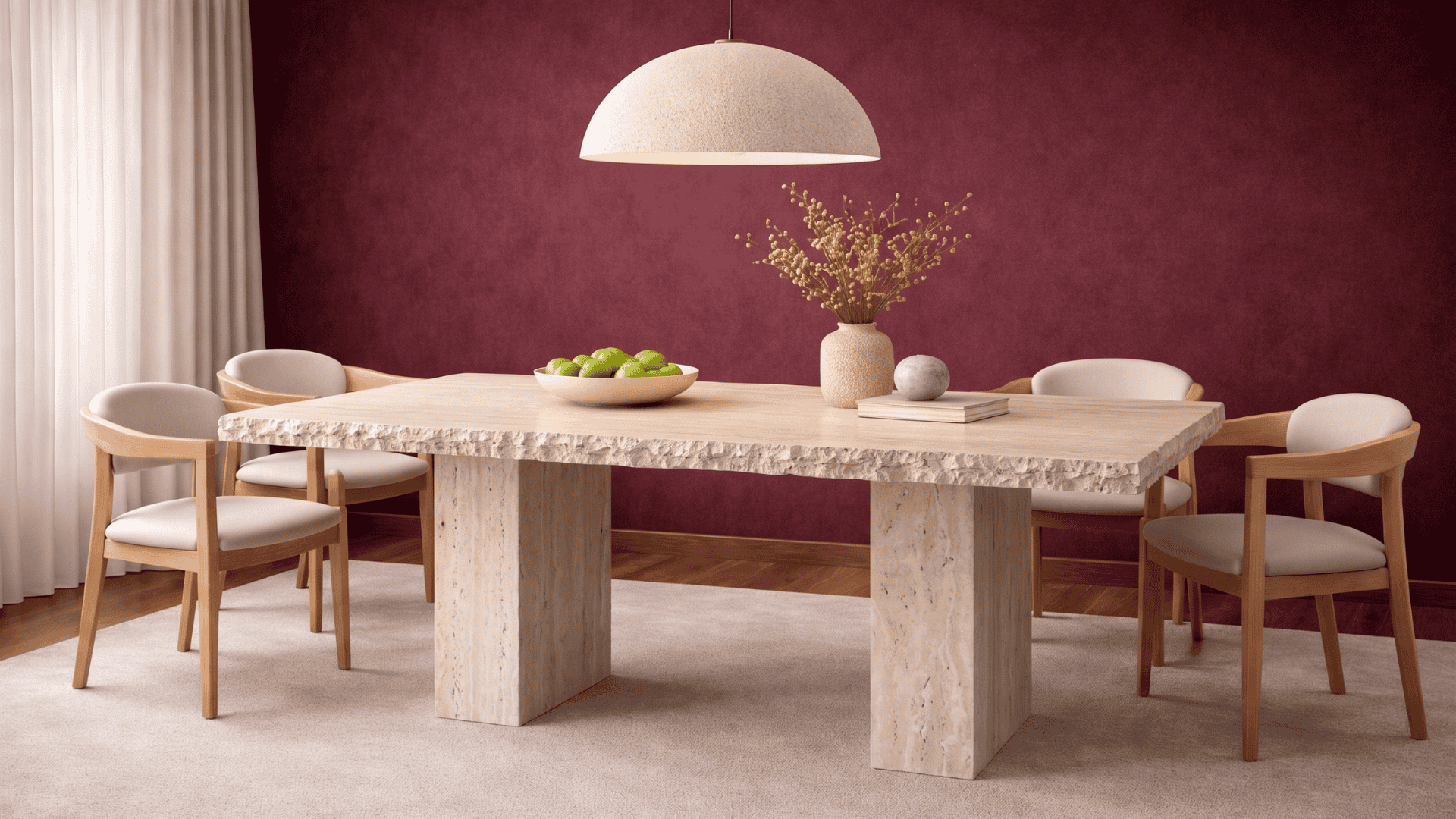 Patakordu-Traverten Mermer Küp Ayak Yemek Masası