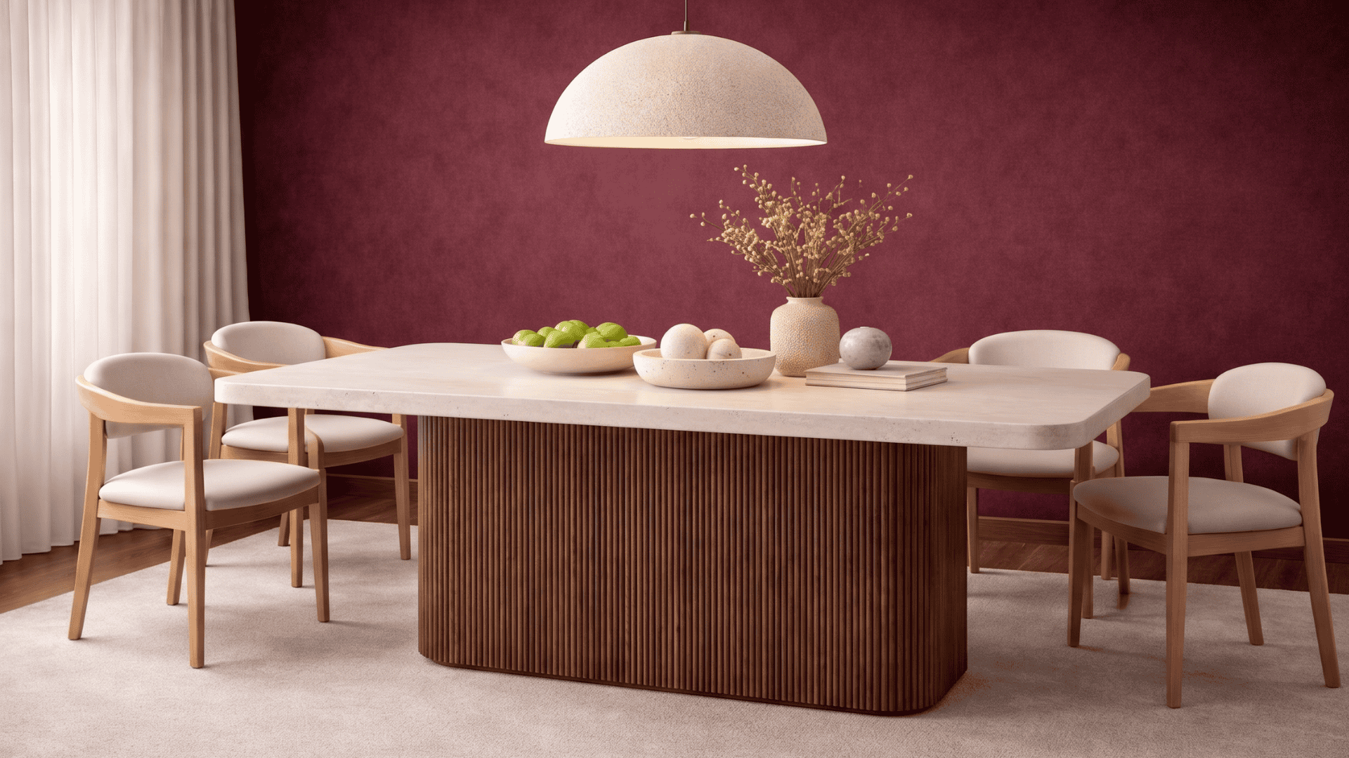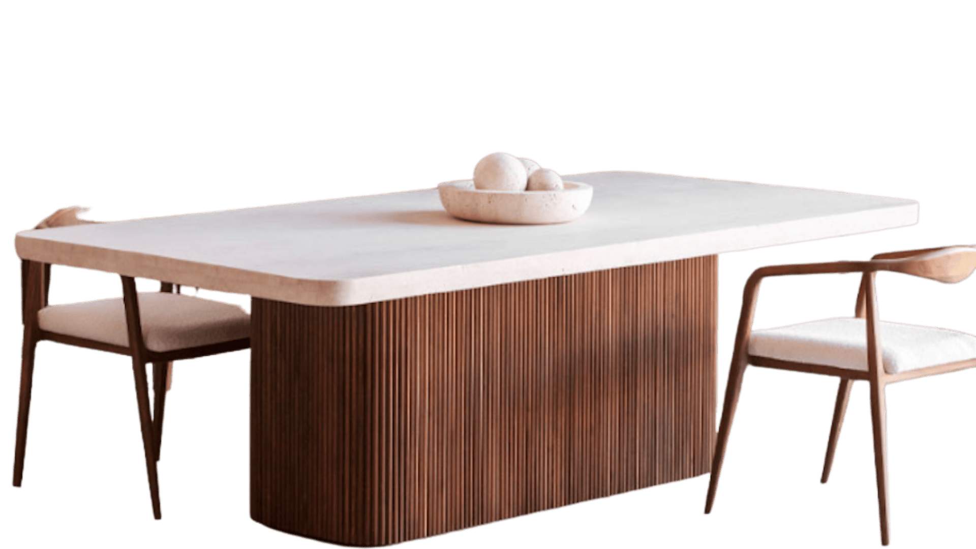 Senza- Ahşap Ayak Traverten Mermer Yemek Masası