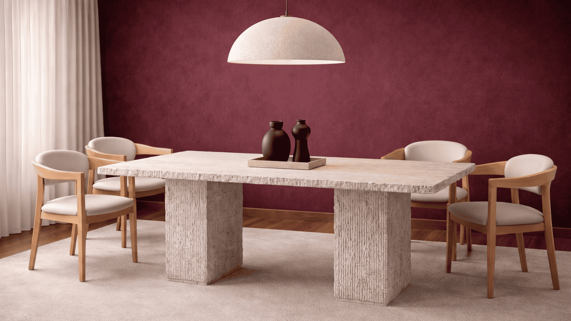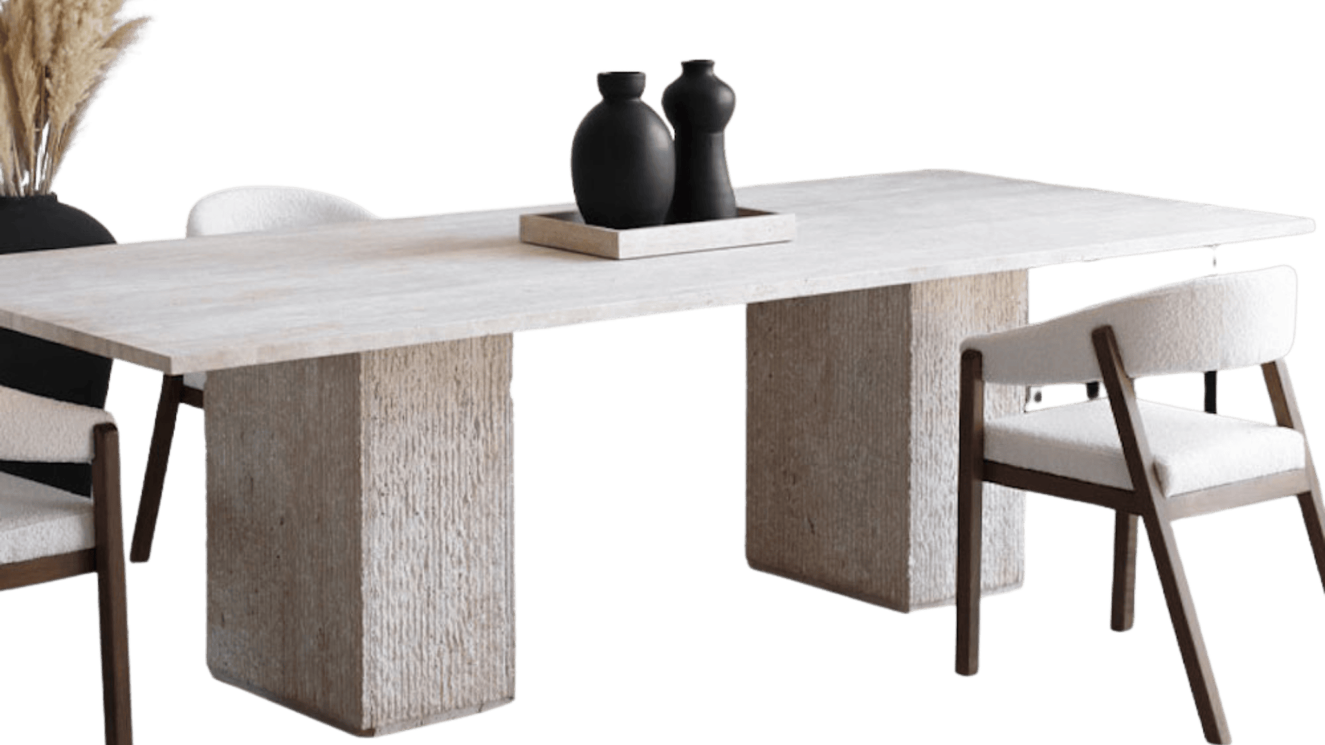 Seth-Traverten Mermer Küp Ayak Yemek Masası