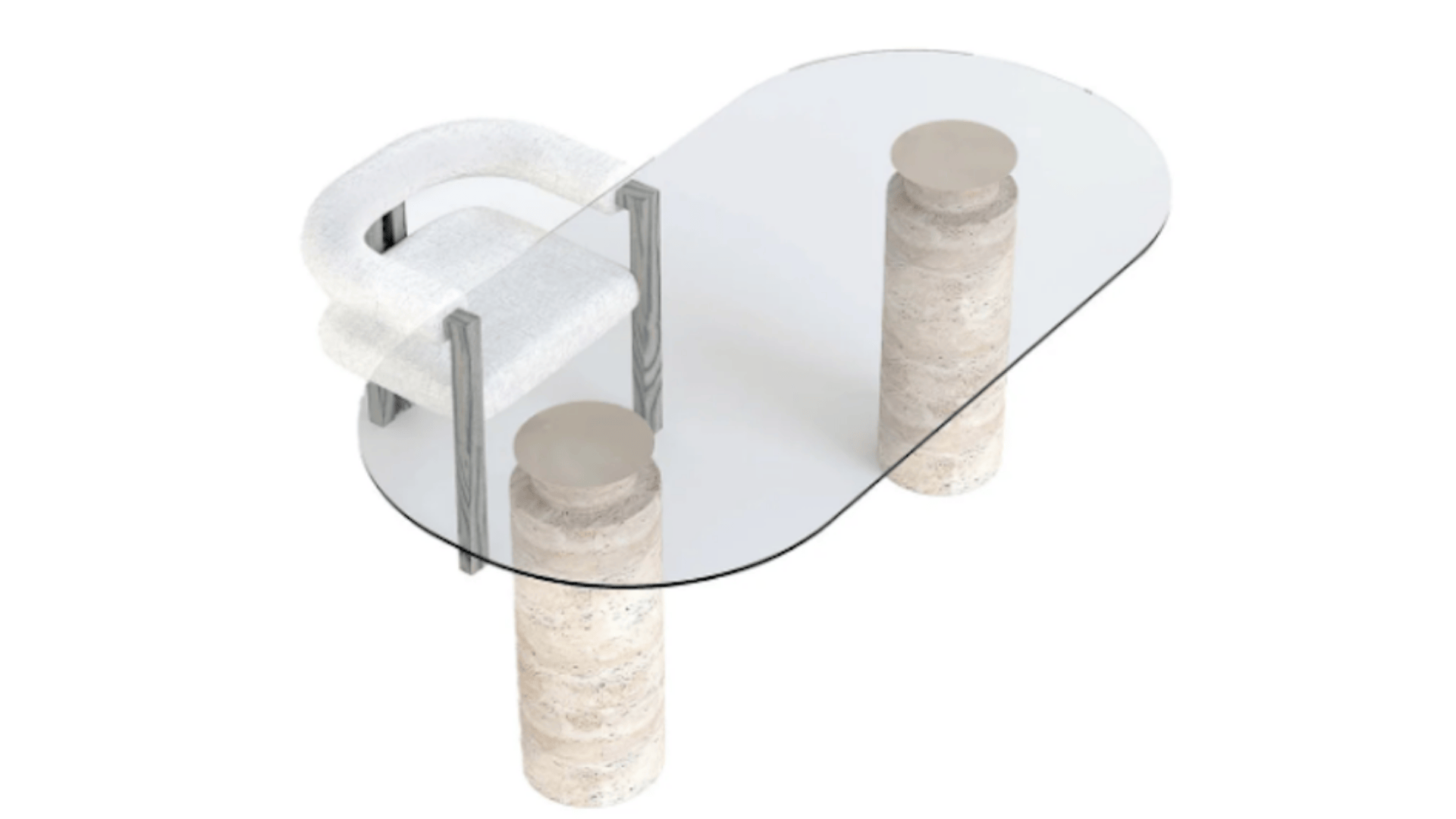 Sutcam-Traverten Mermer Ayaklı Yemek -Çalışma, Ofis Masası