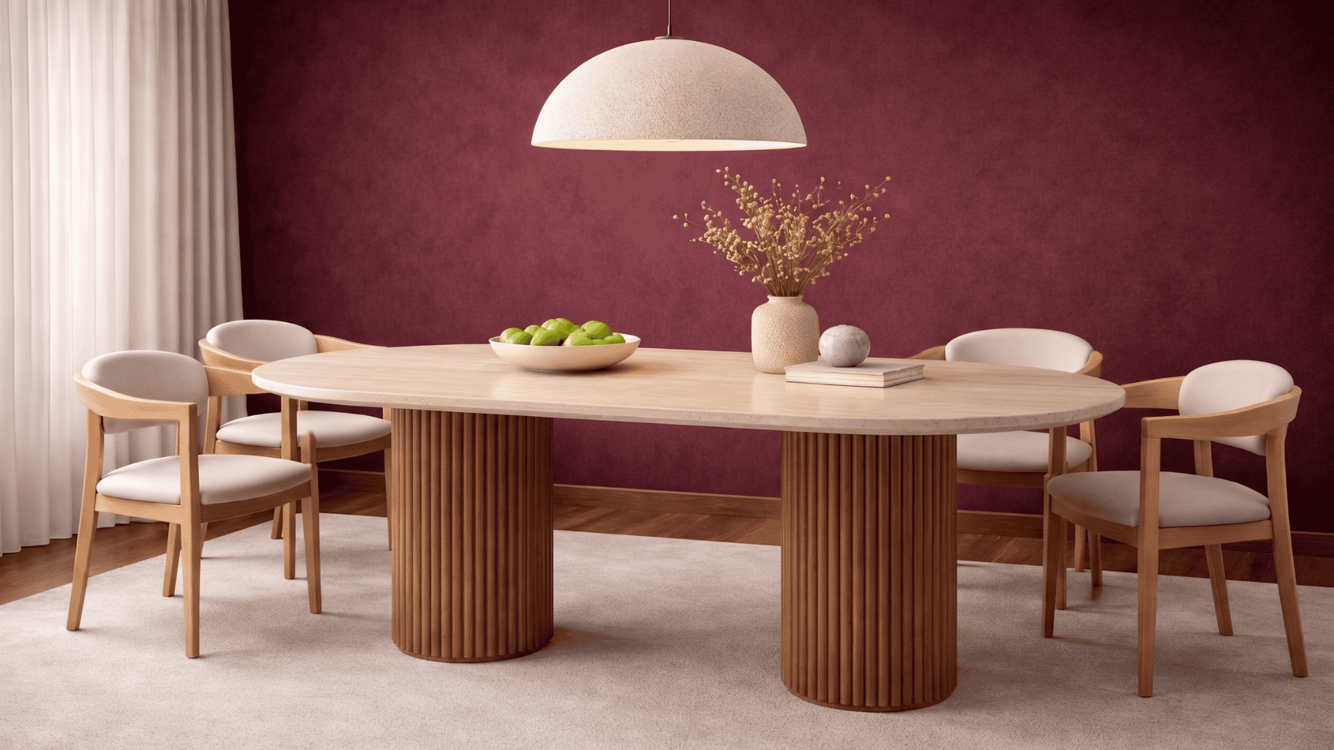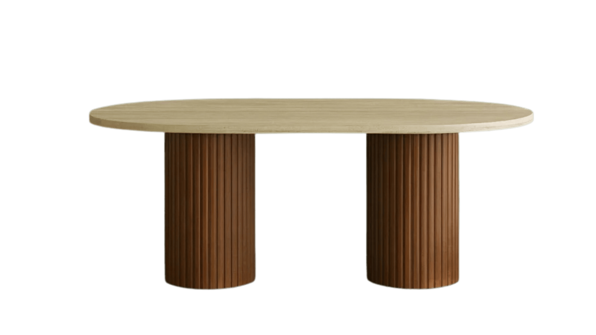 Tirtika- Ahşap Ayak Traverten Mermer Yemek Masası