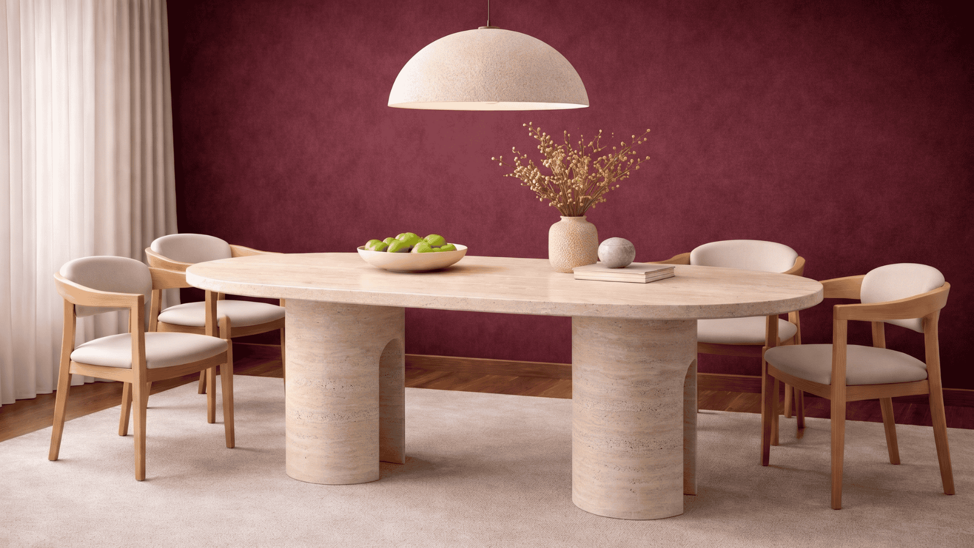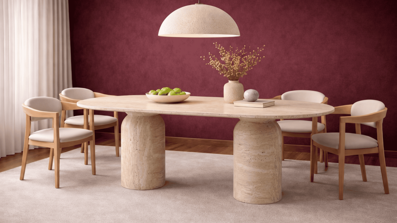 Tulip- Traverten Mermer Yemek Masası