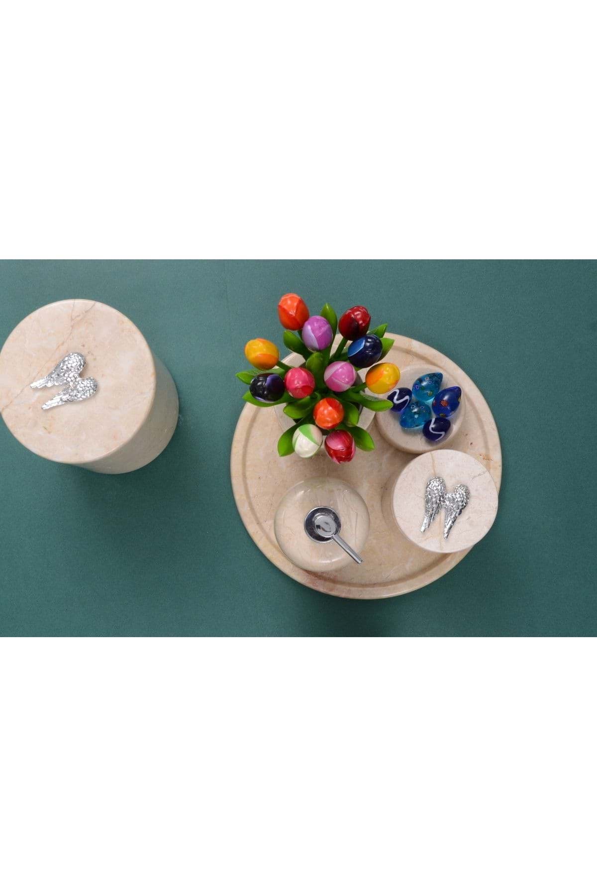 ÜRÜN %100 GERÇEK DOĞAL MERMERDEN ÜRETİLMİŞTİR. ; TEPSİ ÇAP 30 CM ; SIVI SABUNLUK ÇAP 8 CM YÜKSEKLİK 11 CM ; KATI SABUNLUK ÇAP 11 CM ; DİŞ FIRÇALIK ÇAP 8 CM YÜKSEKLİK 10 CM ; PAMUKLUK ÇAP 8.5 CM YÜKSEKLİK 11 CM ; TUVALET FIR ÇALIK ÇAP 10 CM YÜKSEKLİK 15 CM ; ÇÖP KOVASI ÇAP 15 CM YÜKSEKLİK 21 CM ; ÜRÜN BEJ RENK VE PİRİNÇ MELEK KANADI AKSESUAR DETAYLIDIR. ; SILVER GÜMÜŞ RENK AKSESUAR DETAYLIDIR. ;