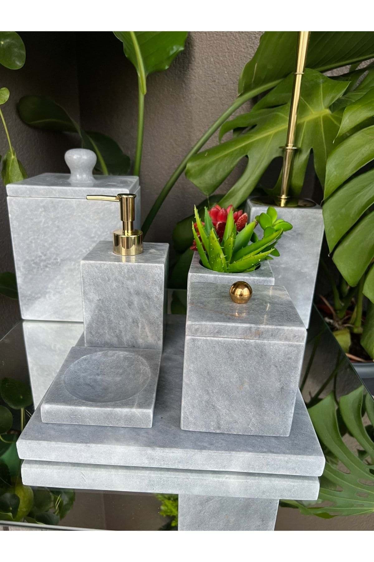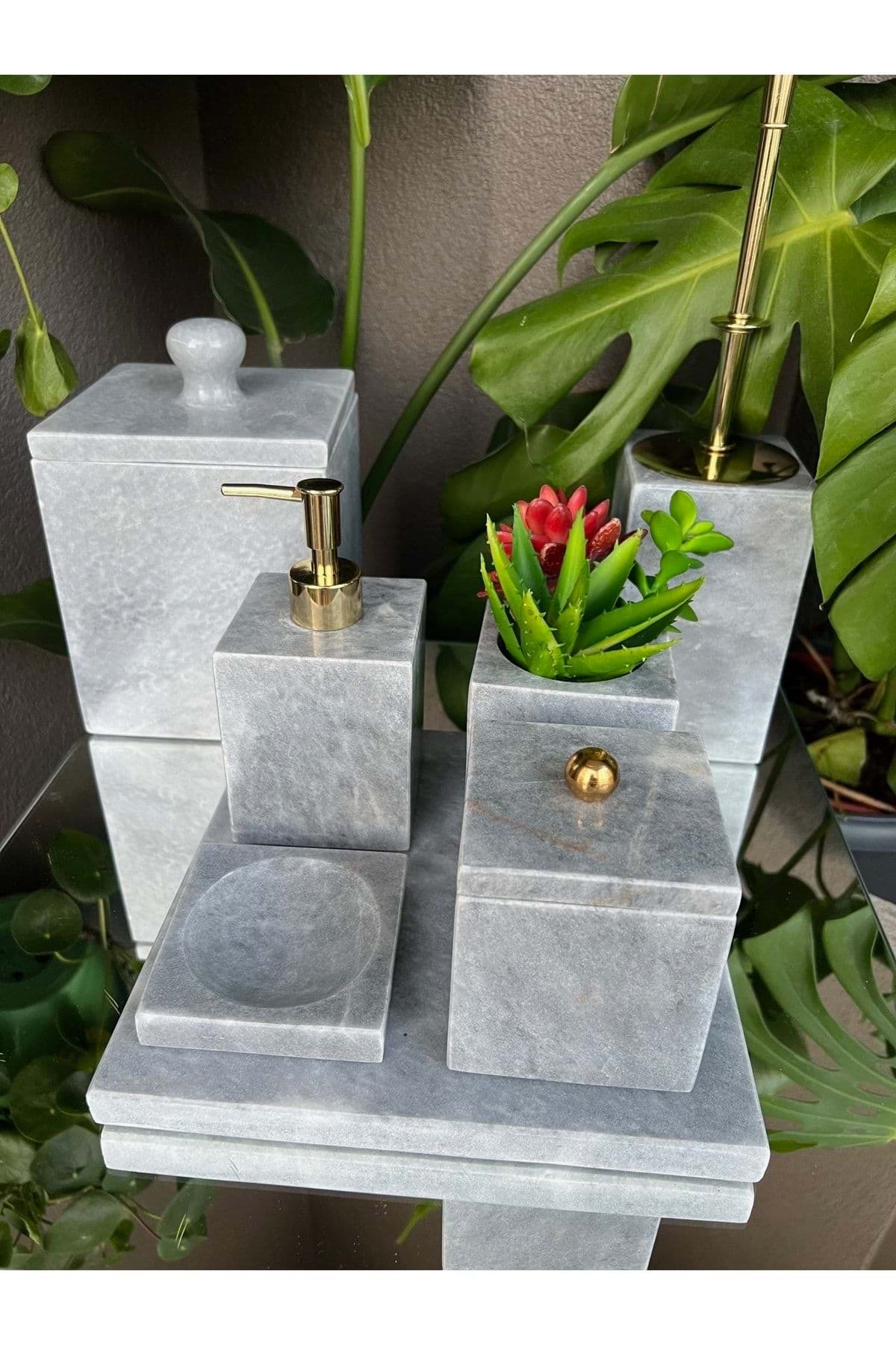 - Mermer dokusuyla banyonuza şıklık katan dekoratif gri mermer düz kare gold detaylı banyo seti takımı; - Modern ve zarif tasarımıyla dikkat çeken bu set, banyonuzun atmosferini zenginleştirir; - 7 parçadan oluşan set, hem fonksiyonel hem de estetik bir kullanım sunar; - Gold detayları ile göz alıcı bir görünüm kazanan bu banyo seti, banyonuzun dekorasyonuna sofistike bir dokunuş ekler; - Yüksek kaliteli mermer materyali sayesinde uzun ömürlü kullanım vaat eder ve kolay temizlenebilir özelliğiyle pratiklik sağlar;