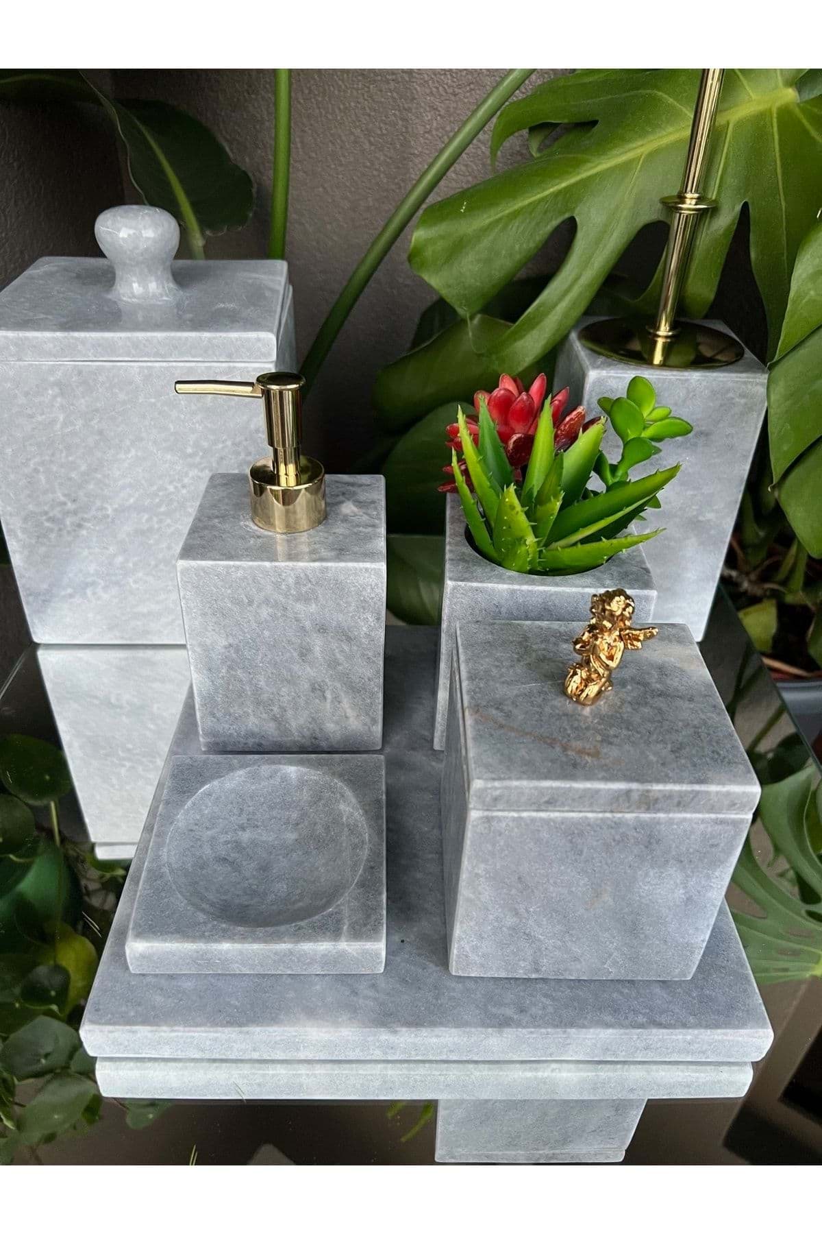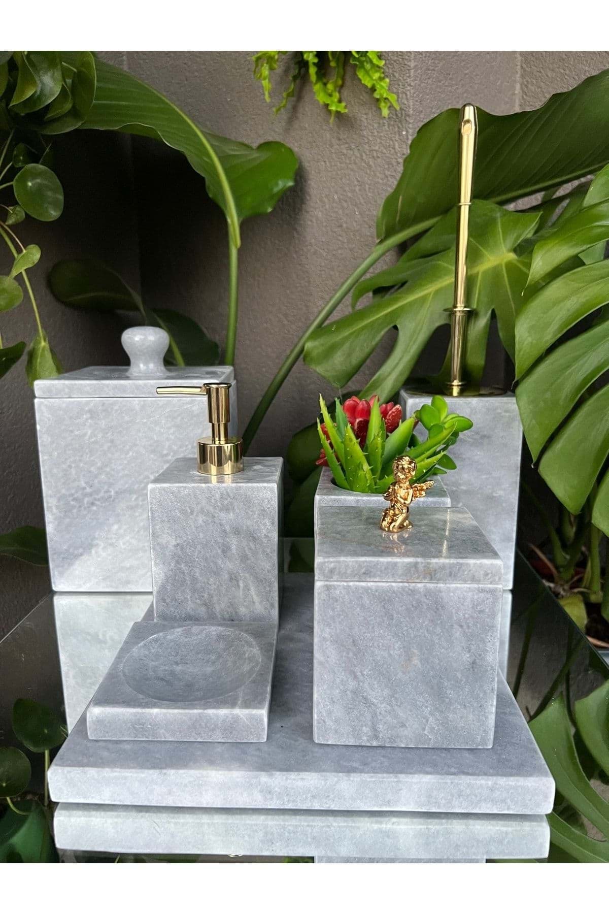 ÜRÜN %100 GER Ç EK DO ĞAL MERMERDEN ÜRETİLMİ Ş TİR. ; TEPSİ ÇAP 30 CM ; SIVI SABUNLUK ÇAP 8 CM Y ÜKSEKLİK 11 CM ; KATI SABUNLUK ÇAP 11 CM ; D İ Ş FIRÇALIK ÇAP 8 CM Y ÜKSEKLİK 10 CM ; PAMUKLUK ÇAP 8 CM Y ÜKSEKLİK 11 CM ; TUVALET FIR ÇALIK ÇAP 8 CM Y ÜKSEKLİK 15 CM ; ÇÖP KOVASI ÇAP 15 CM Y ÜKSEKLİK 21 CM ; ÜRÜN GRI RENKTEDIR ; GOLD ALTIN RENK MELEK AKSESUAR DETAYLIDIR ;