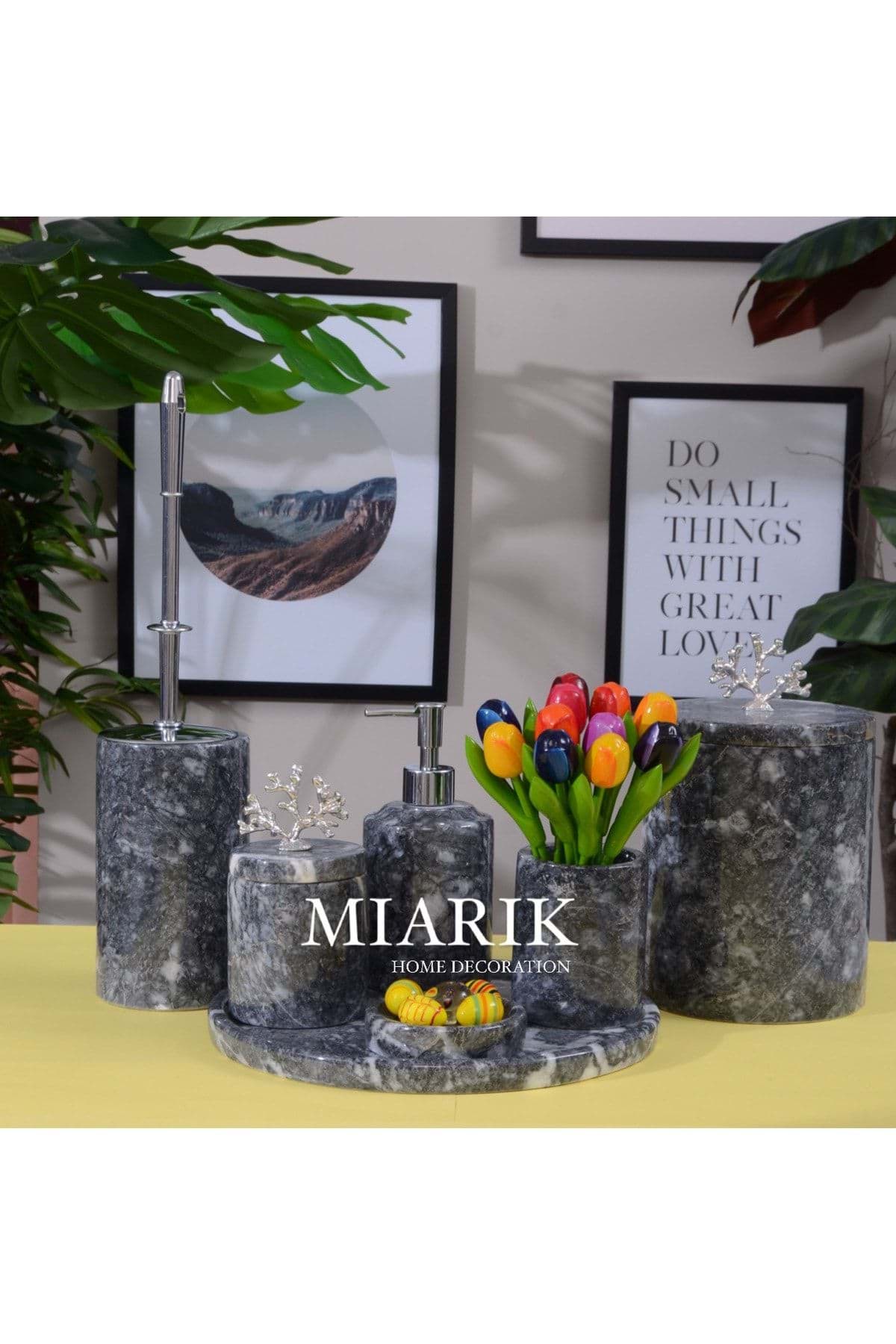 ÜRÜN %100 GER Ç EK DO ĞAL MERMERDEN ÜRETİLMİ Ş TİR. ; TEPSİ ÇAP 30 CM ; SIVI SABUNLUK ÇAP 8 CM Y ÜKSEKLİK 11 CM ; KATI SABUNLUK ÇAP 11 CM ; D İ Ş FIRÇALIK ÇAP 8 CM Y ÜKSEKLİK 10 CM ; PAMUKLUK ÇAP 8.5 CM Y ÜKSEKLİK 11 CM ; TUVALET FIR ÇALIK ÇAP 10 CM Y ÜKSEKLİK 15 CM ; ÇÖP KOVASI ÇAP 15 CM Y ÜKSEKLİK 21 CM ; ÜRÜN koyu gri RENK VE PİRİN Ç MERCAN AKSESUAR DETAYLIDIR. ; GÜMÜŞ RENK AKSESUAR DETAYLIDIR ;